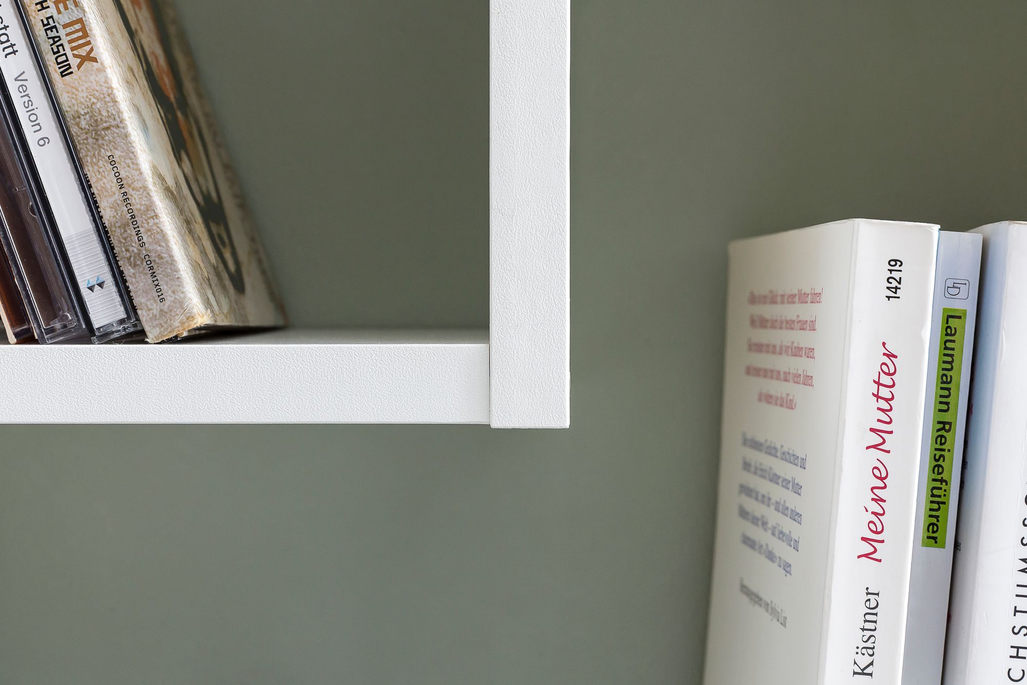 Biała półka ścienna łącząca nowoczesny styl i funkcjonalność. Wykonana z płyty wiórowej o grubości 16 mm z białym foliowym wykończeniem, zawiera pięć półek o różnych rozmiarach na książki, dekoracje i akcesoria.