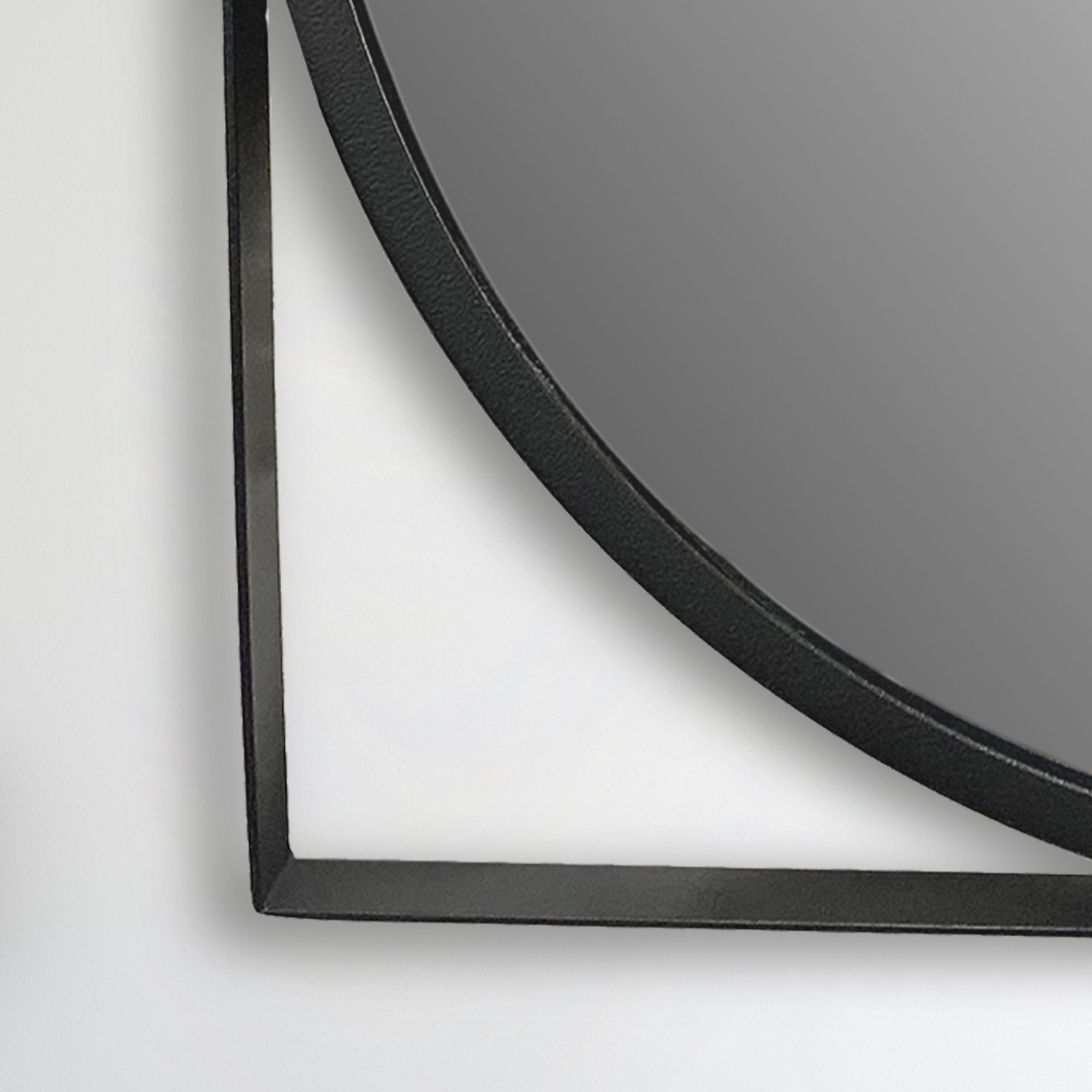 Czarna metalowa lustro ścienne | 54x54 cm | Okrągłe lustro w kwadratowej ramie