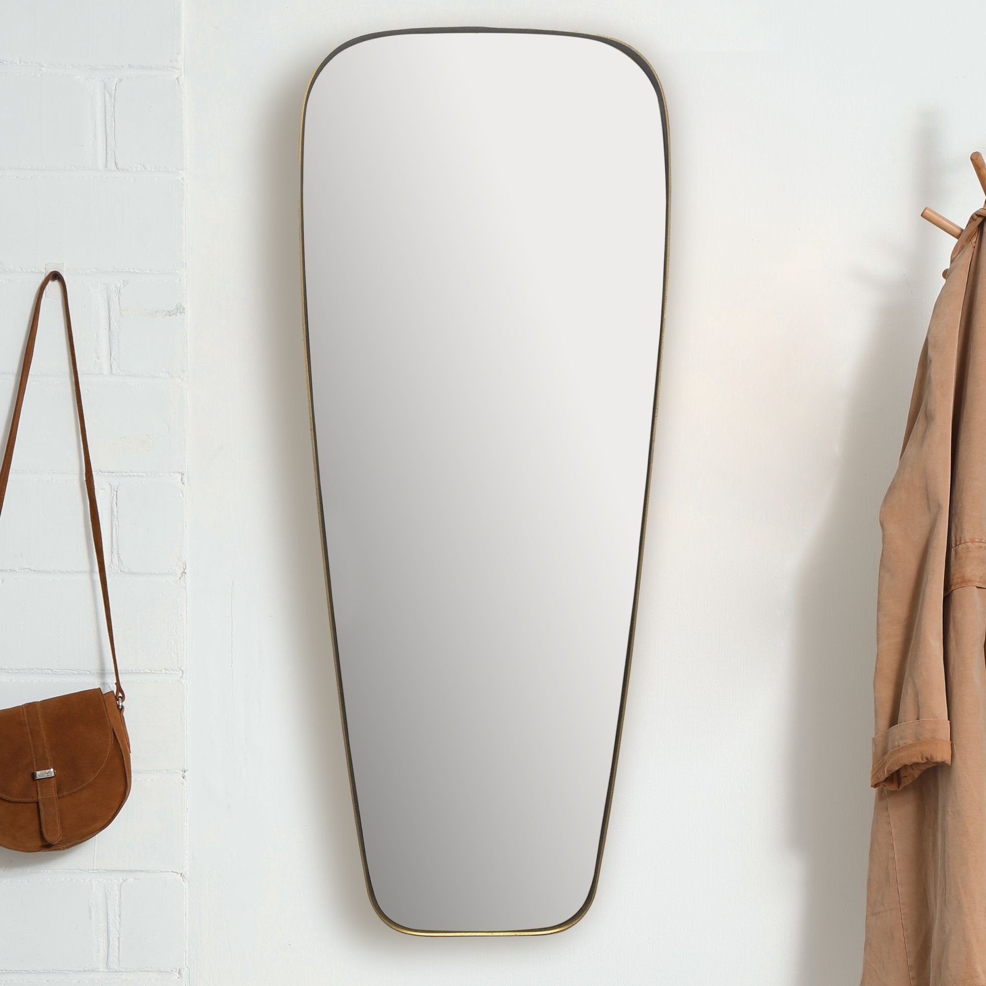 Informacje dot. produktu "Lustro ścienne 38x100 cm metalowe lustro wiszące złote, żelazne lustro dekoracyjne prostokątne zaokrąglone z ramą, duże lustro ścienne, lustro do przedpokoju podłużne, nowoczesne lustro do garderoby"