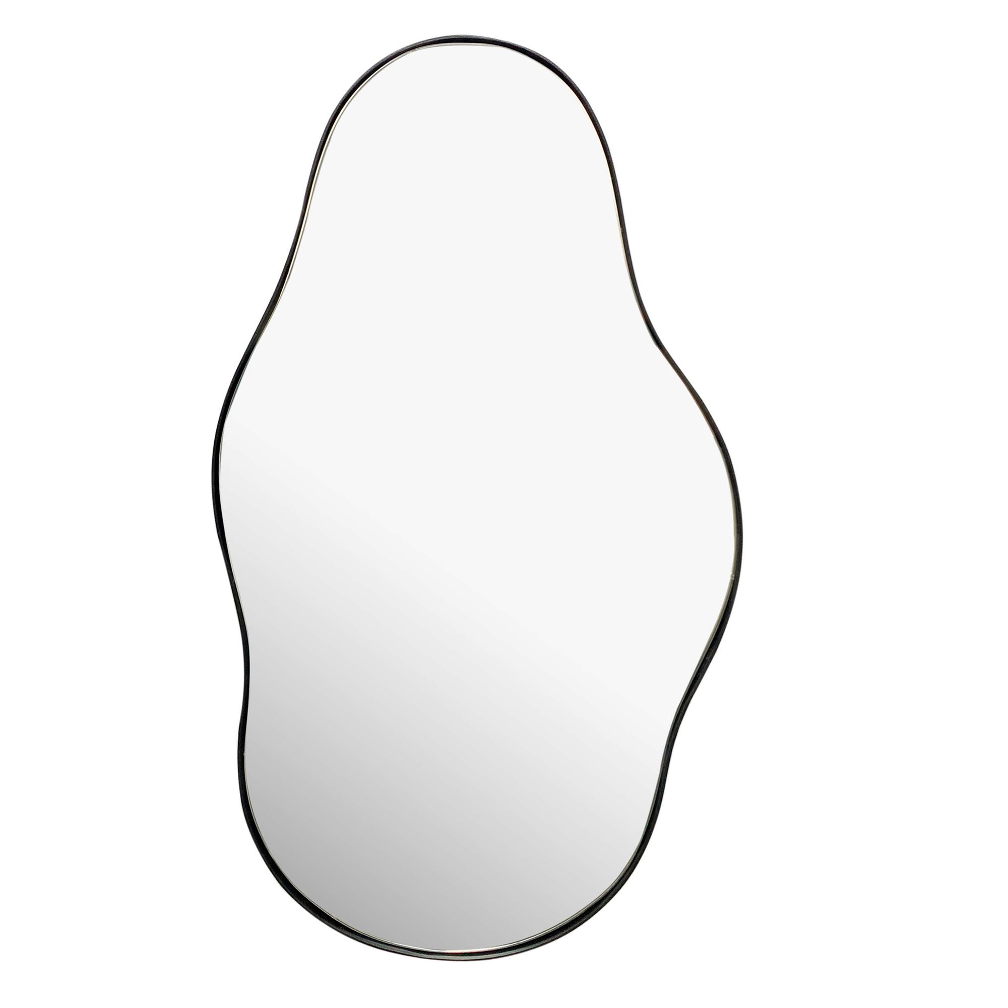 Wybierz unikalne asymetryczne lustro ścienne z czarną metalową ramą. Jego oryginalny i dynamiczny kształt dodaje współczesnego charakteru do wnętrza, idealne do korytarzy, salonów lub innych nowoczesnych pomieszczeń.