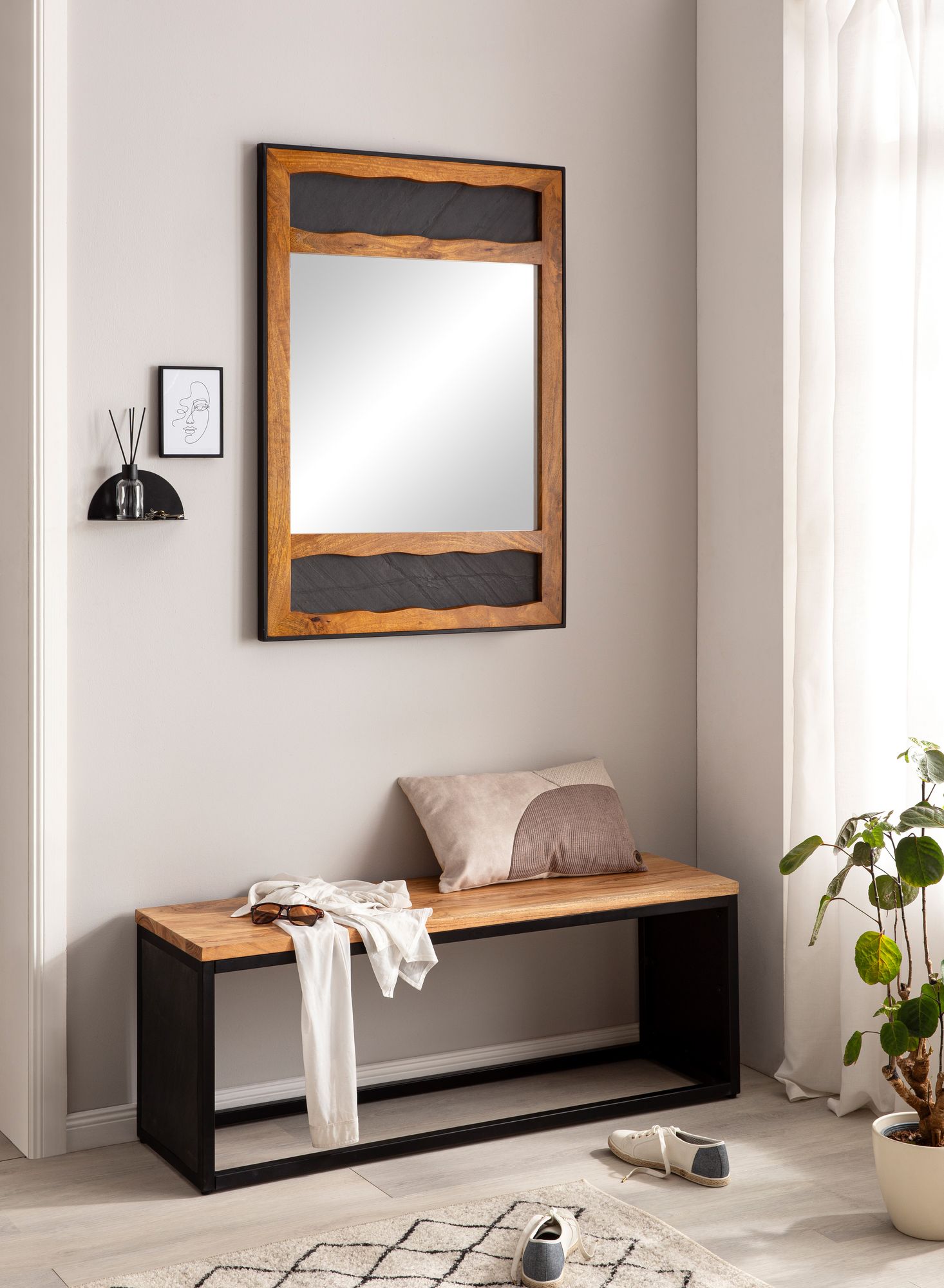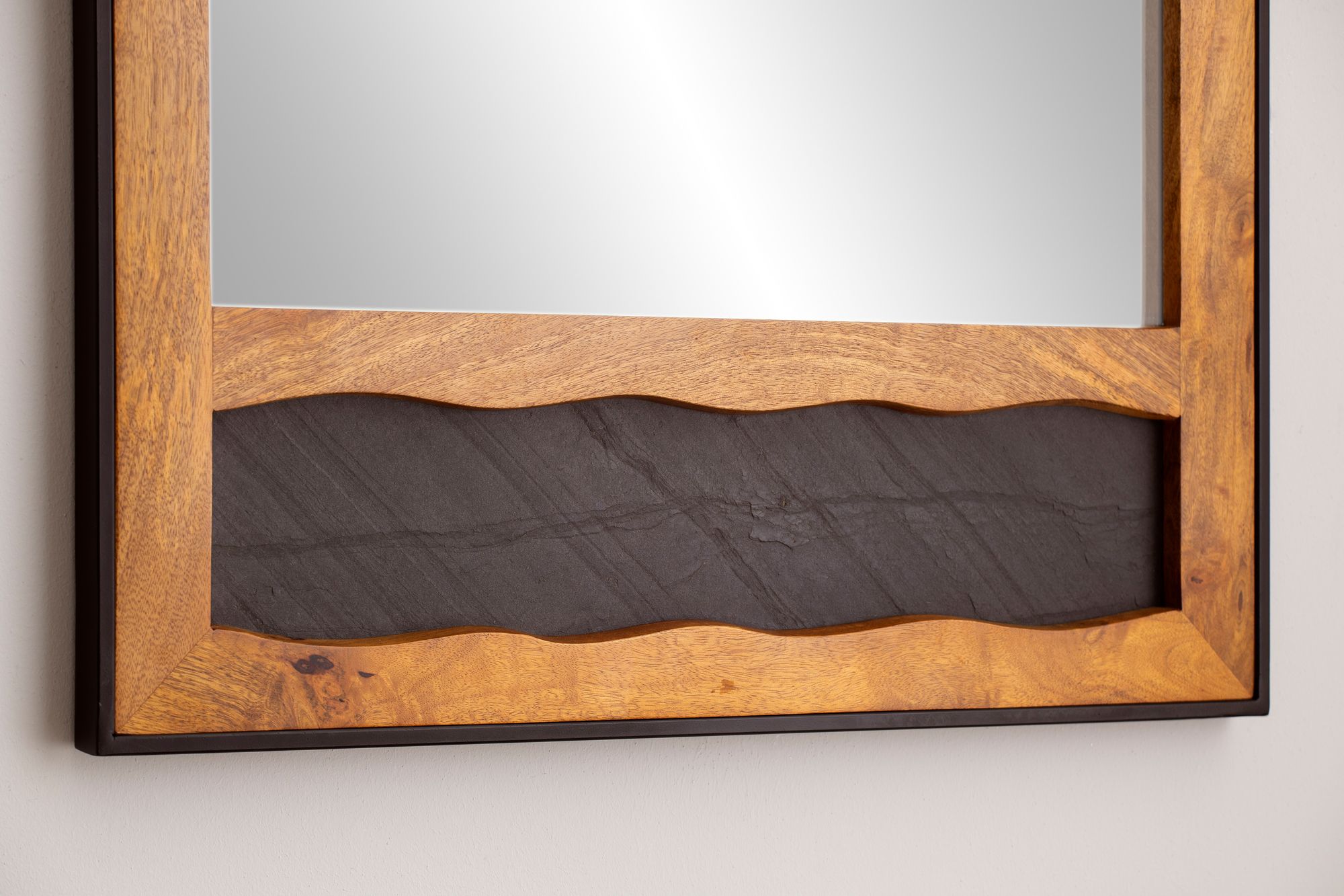 Lustro ścienne mango z litego drewna i kamienia 72x102x3 cm lustro do przedpokoju duże