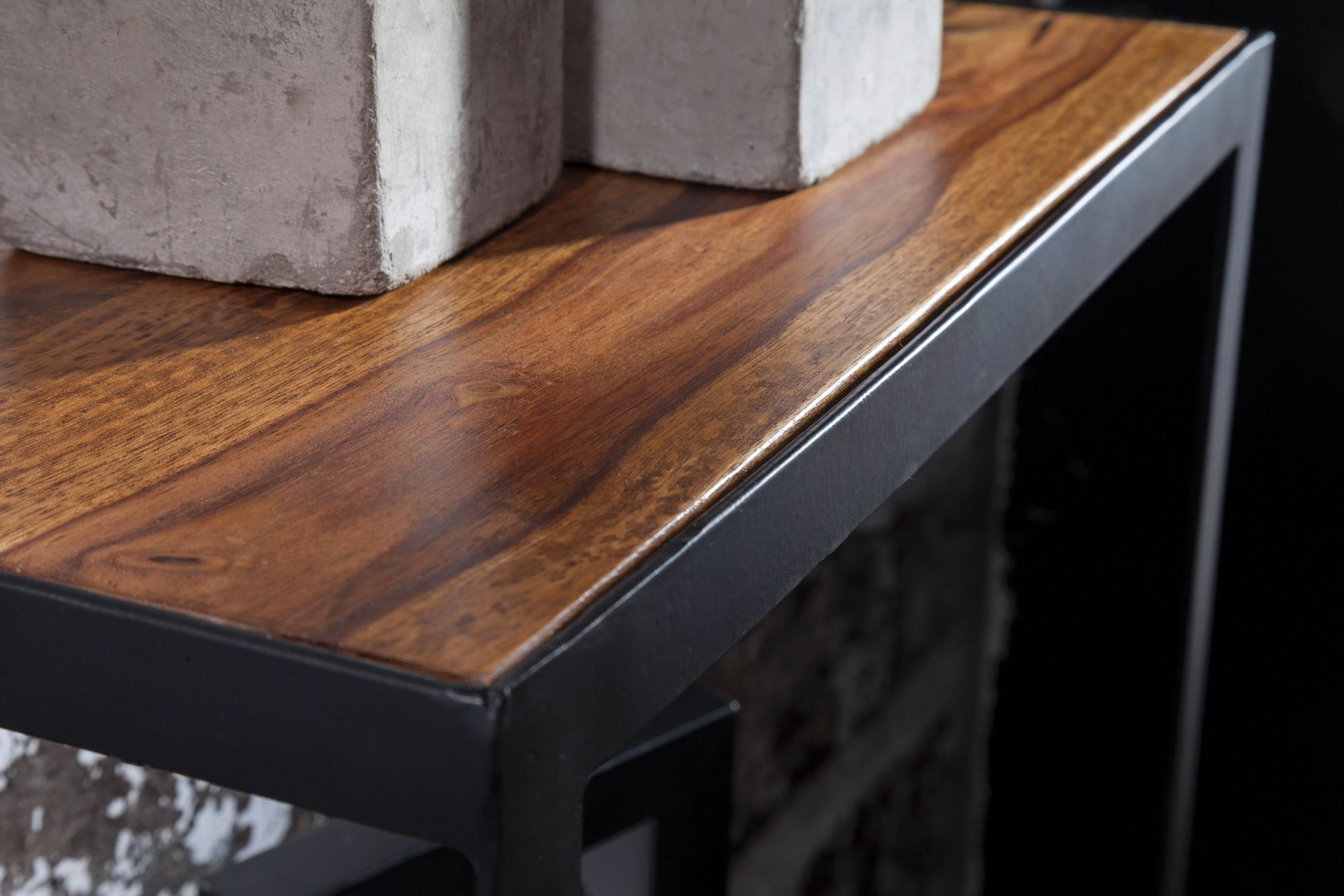 - Materiał: półka z litego drewna Sheesham, rama z czarnego metalu