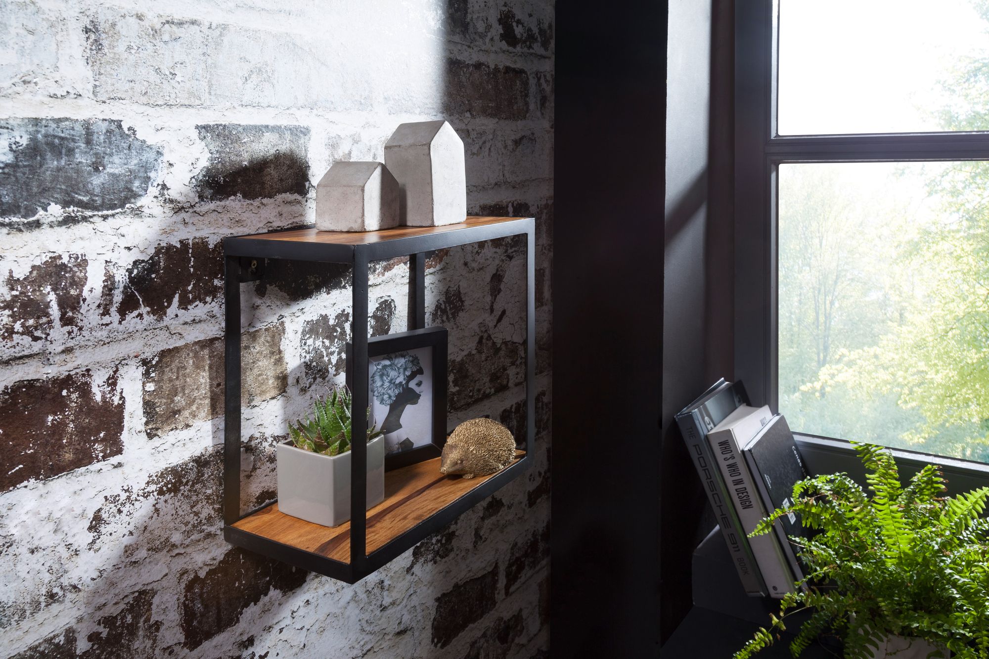 Informacje dot. produktu "Półka ścienna PURI | Drewno lite Sheesham i czarny metal | 35x18x35 cm"