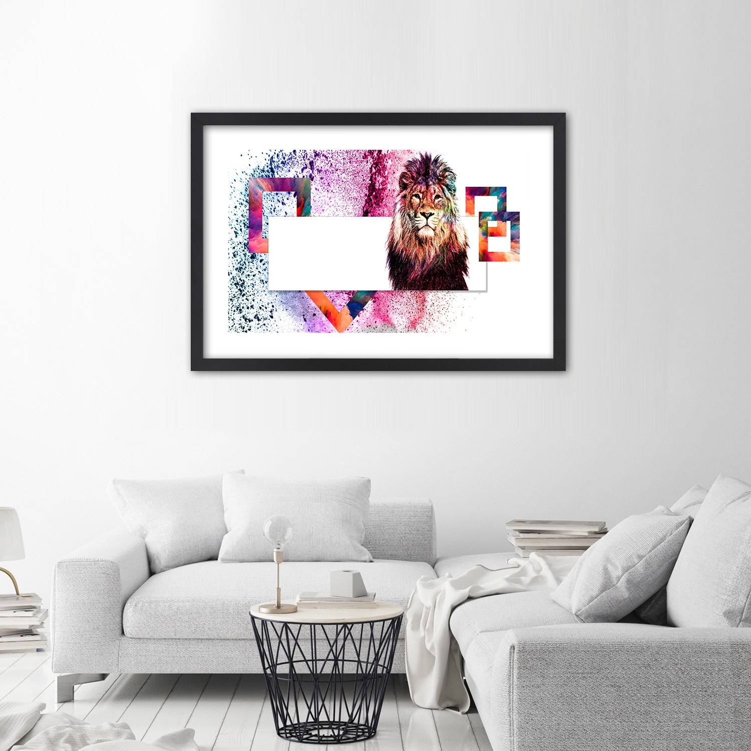 Opis i cechy charakterystyczne - Rama z czarnej fornirowanej płyty MDF z plakatem lwa z kolorową grzywą