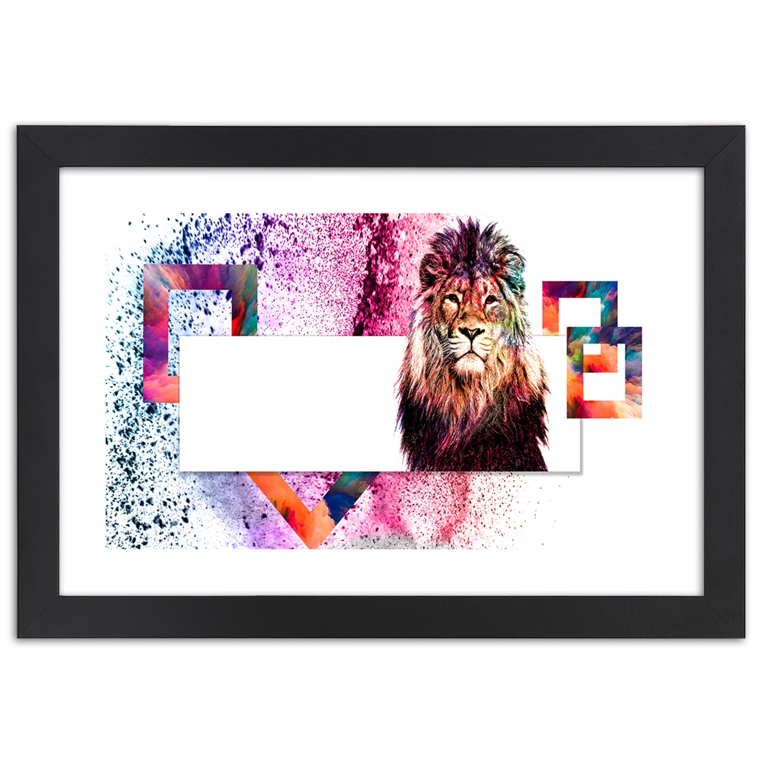Informacje dot. produktu "Czarna, fornirowana rama mdf z plakatem lwa z kolorową grzywą"