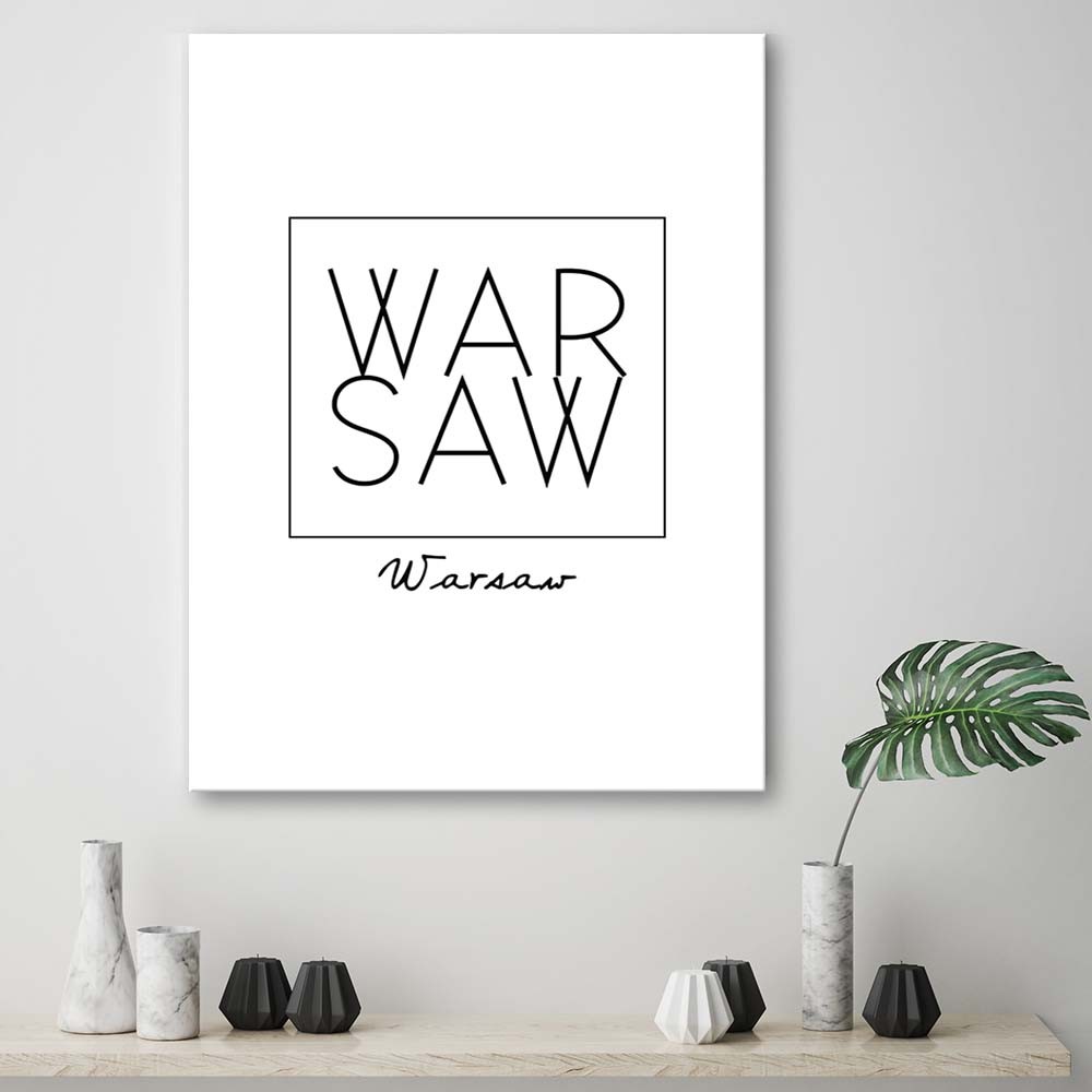 Informacje dot. produktu "Dekoracyjna rama mdf wydrukowana na płótnie z napisem warszawa"