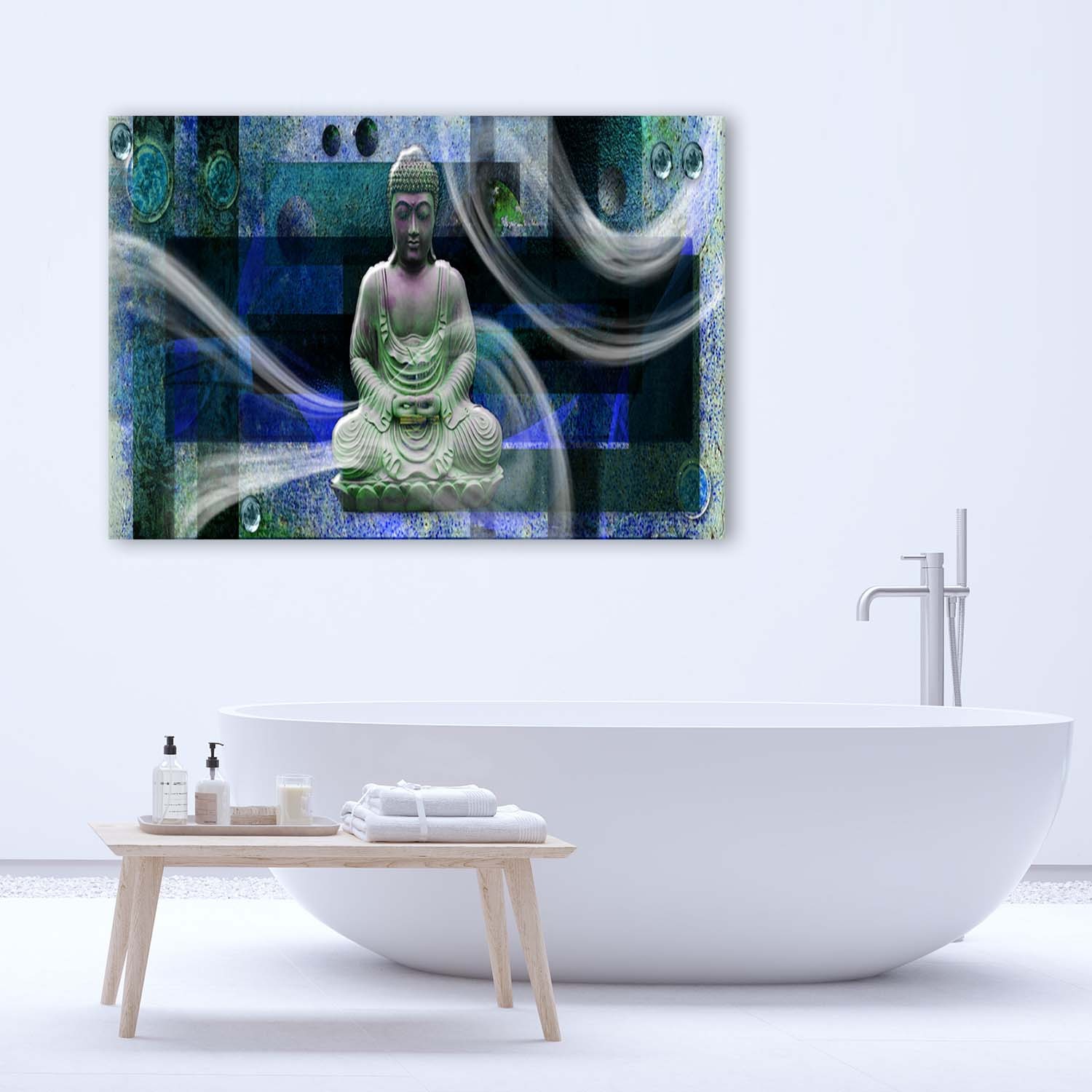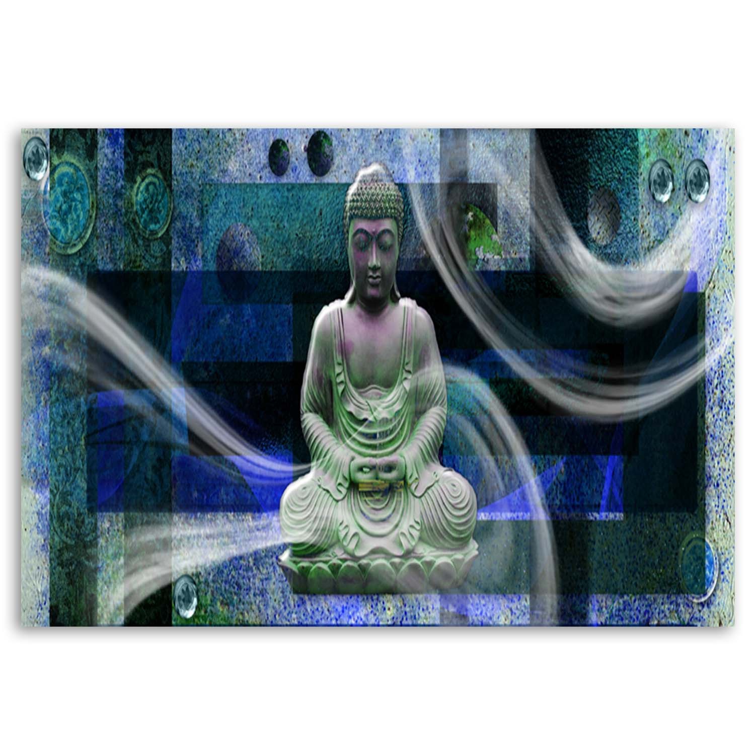 Informacje dot. produktu "Ozdobna ramka z posągiem buddy i wielobarwnymi figurami geometrycznymi"