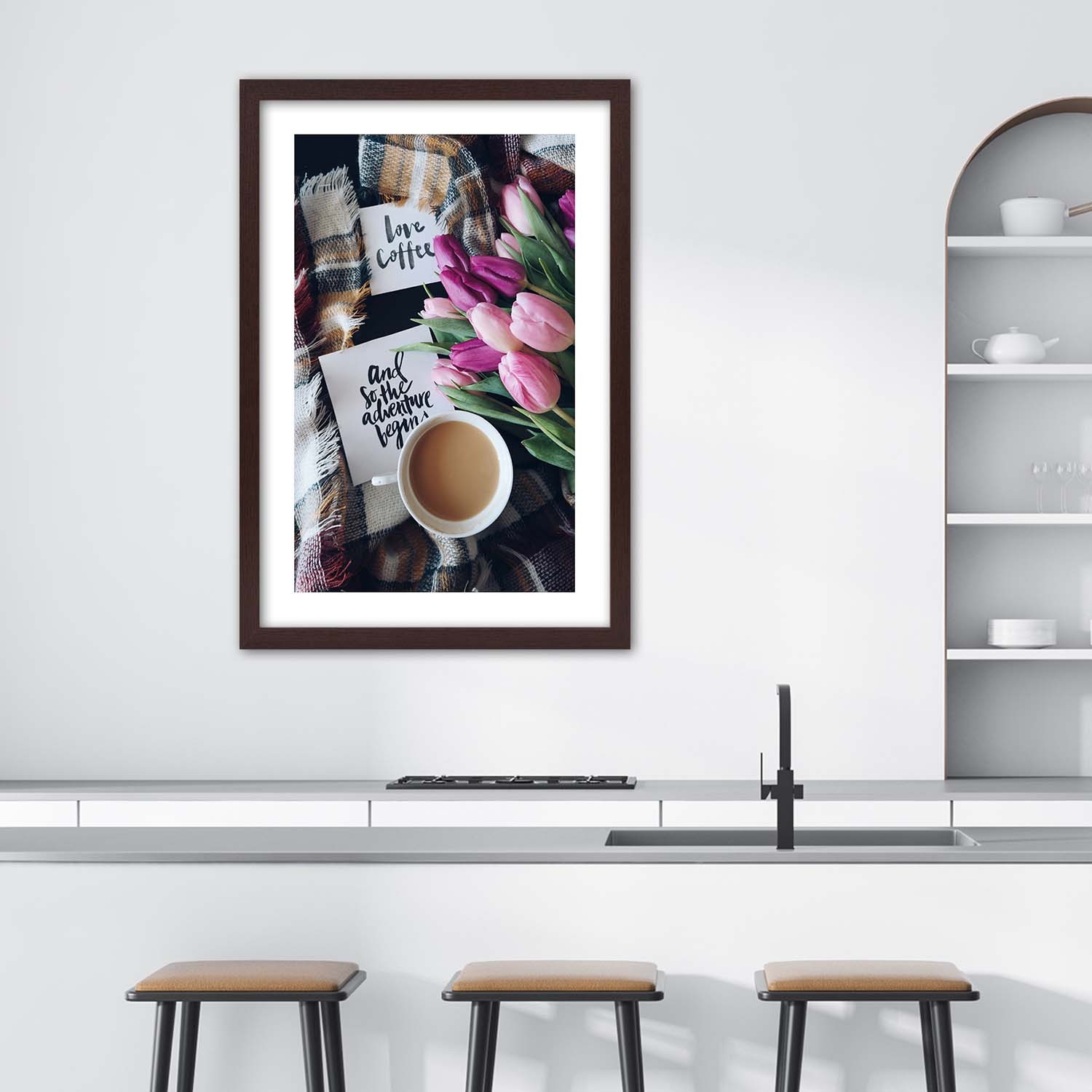 Picture in brown frame, Coffee morning