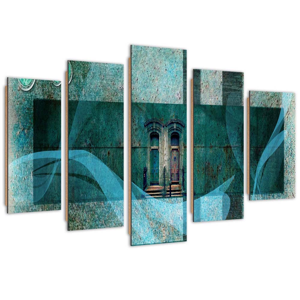 Informacje dot. produktu "Pięciopanelowa ramka z tajemniczym obrazem okna wydrukowanym na papierze z zielonym wykończeniem"
