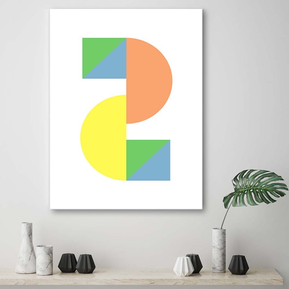 - Rama z zadrukowanym płótnem. Wzór: kolorowe figury geometryczne.