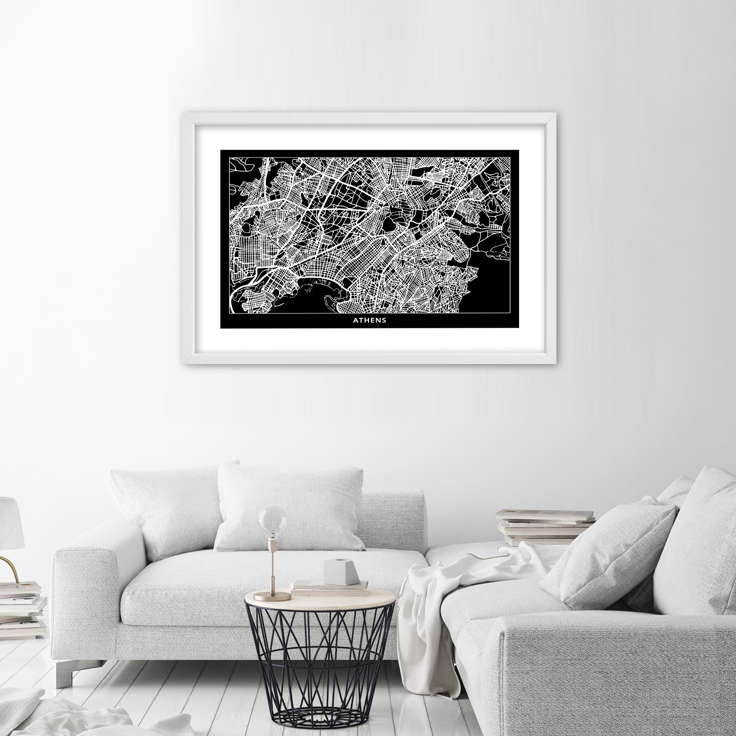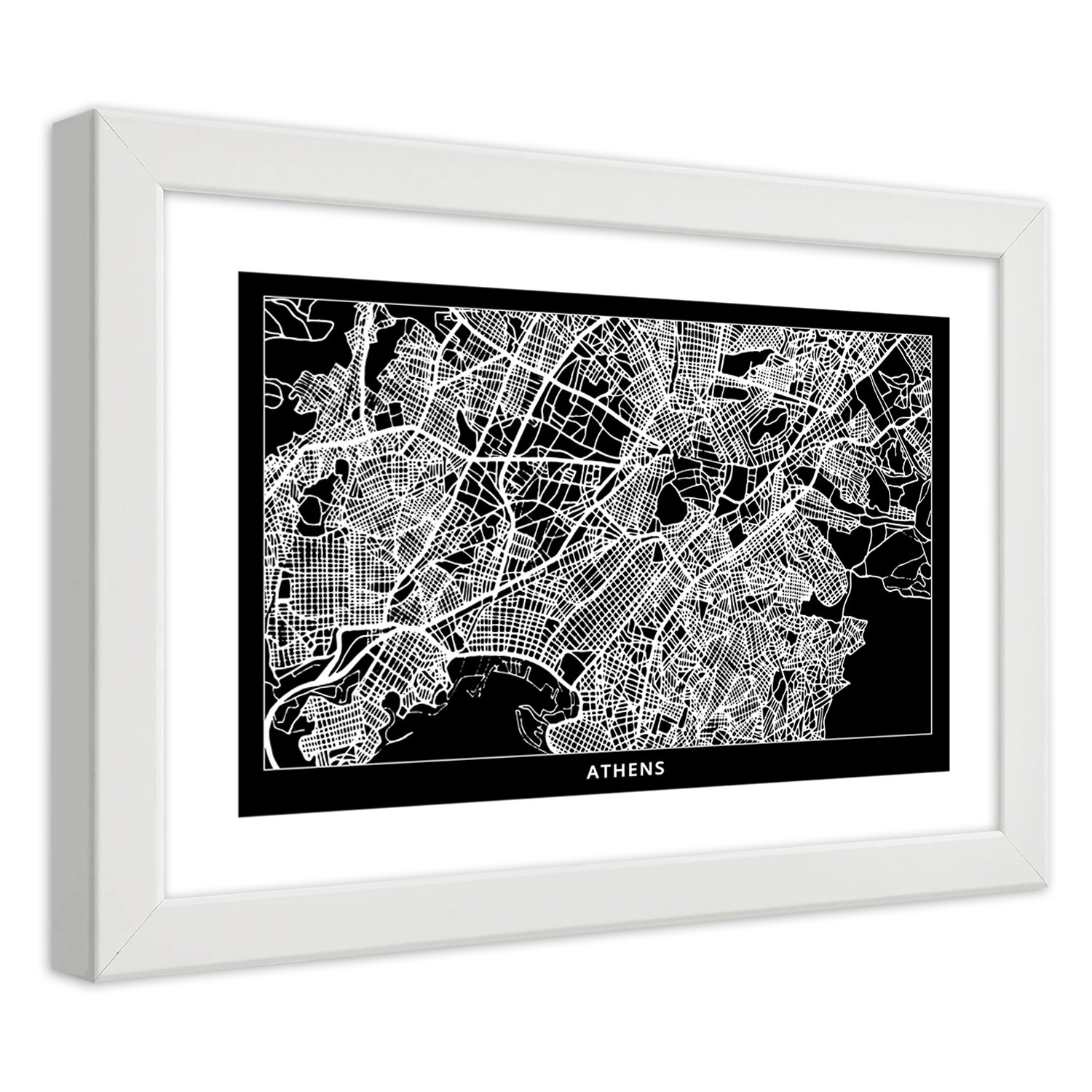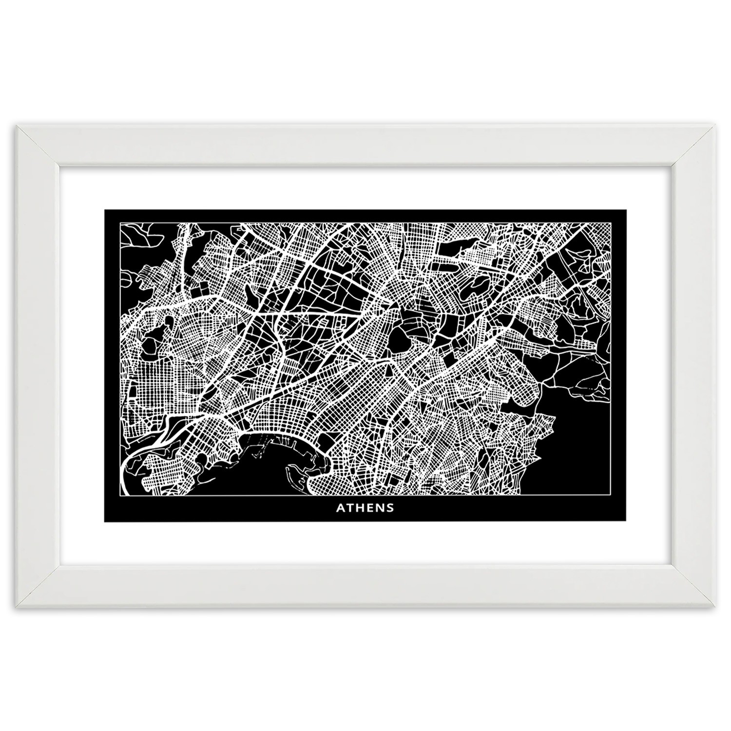 - Ramka MDF (włókno średniej gęstości) przedstawiająca mapę Aten wydrukowaną na satynowym papierze.