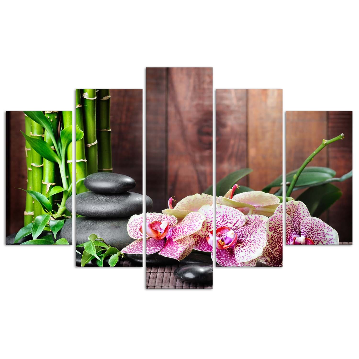 Informacje dot. produktu "Zestaw pięciu ramek do zawieszenia na płótnie z nadrukiem mdf zen orchidea i kompozycja bambusowa"
