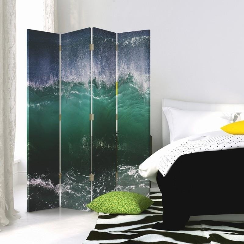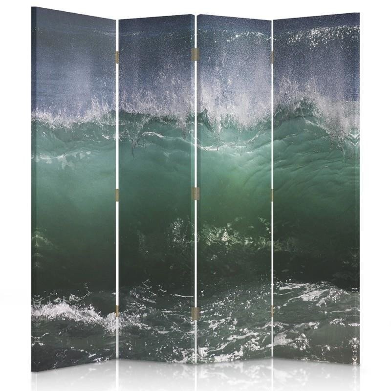 Informacje dot. produktu "Parawan dwustronny 145 cm wykonany z płyty mdf i płótna z wizerunkiem zielonego tsunami"