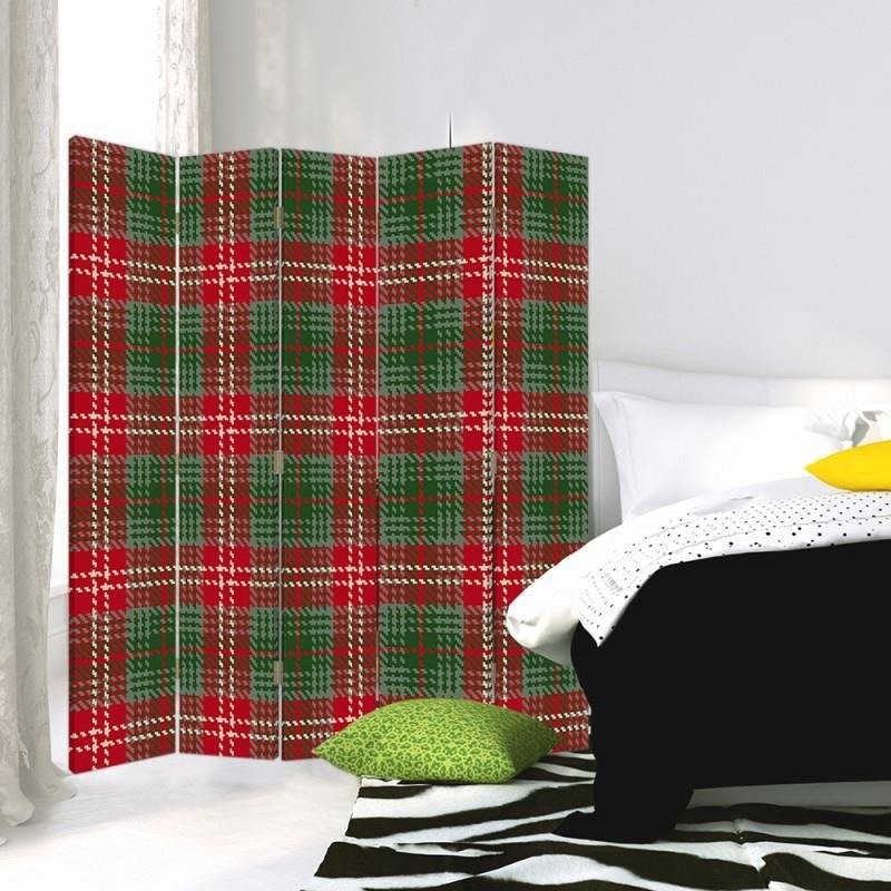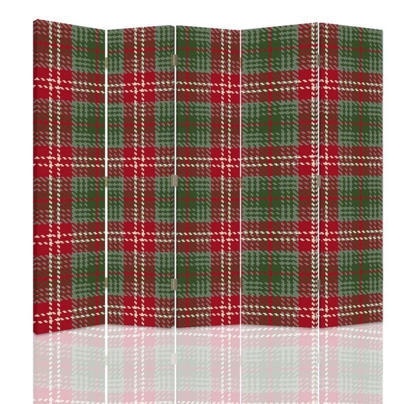 Informacje dot. produktu "Parawan dwustronny 180 cm wykonany z płyty mdf i płótna z dekoracją w czerwono-zieloną kratę"
