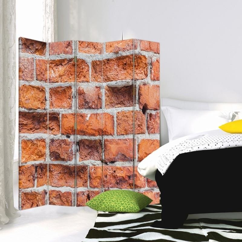 Parawan dwustronny 180 cm wykonany z płyty mdf i płótna z wizerunkiem cegieł