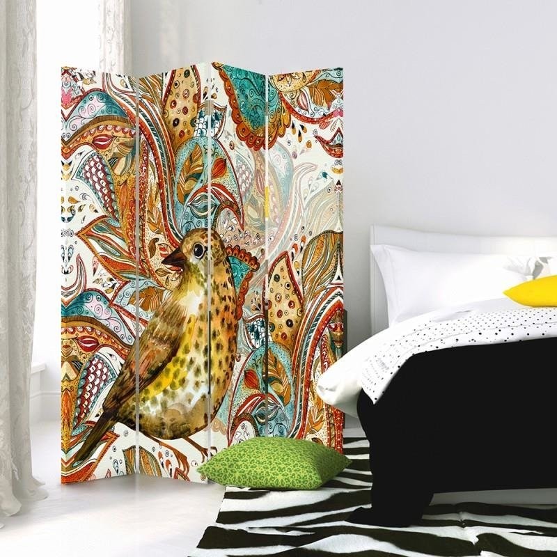 Parawan z wizerunkiem orientalnego ptaka z płyty mdf i płótna