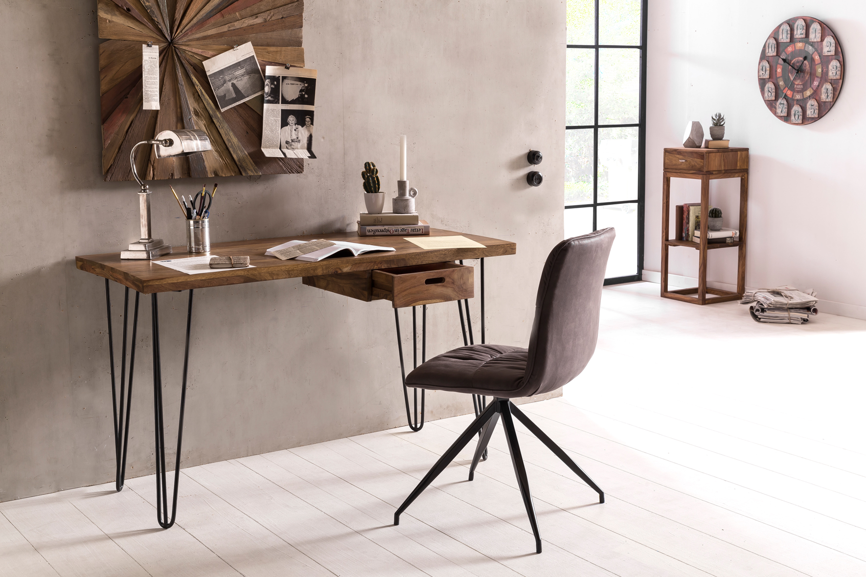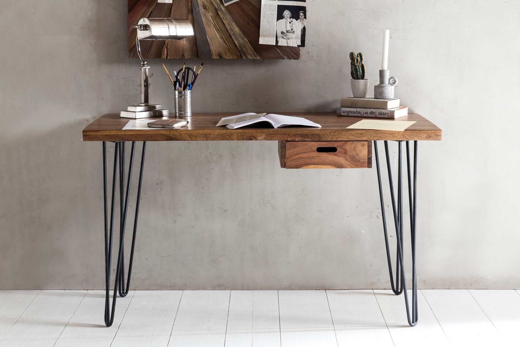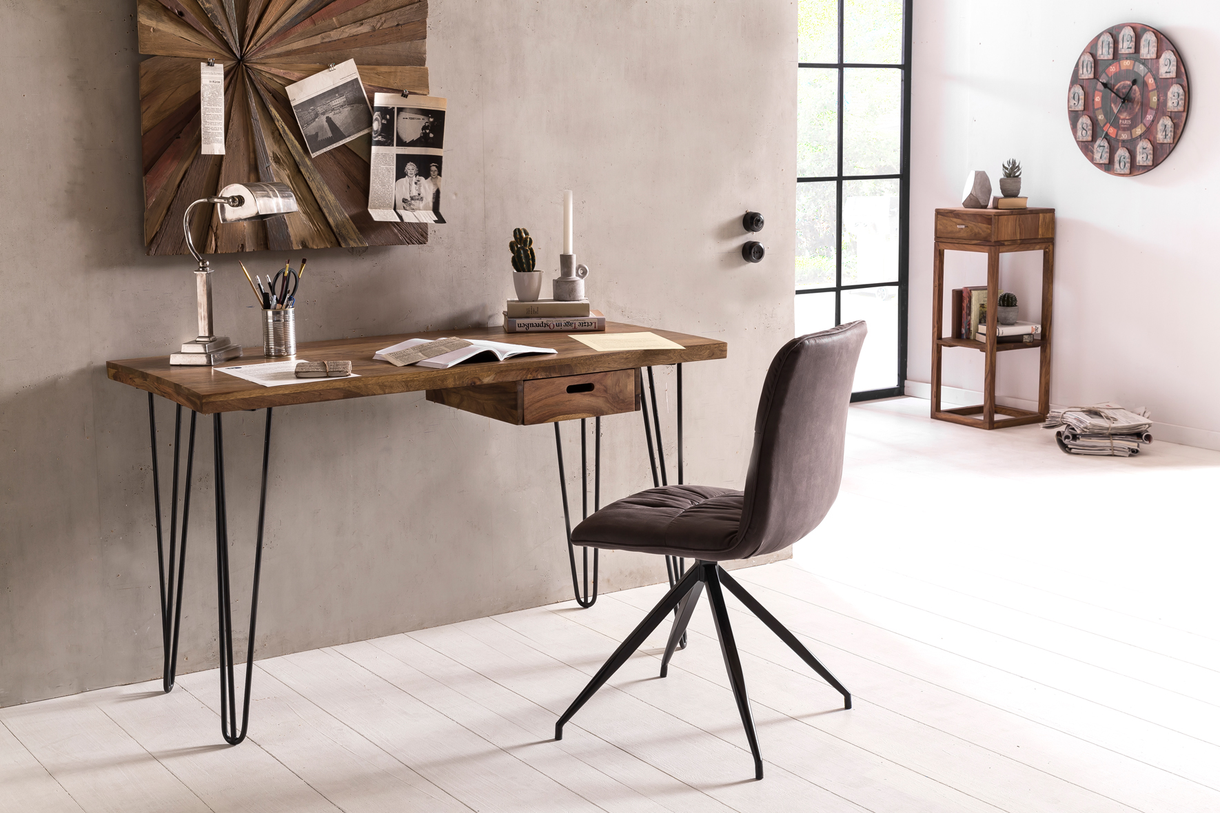 Desk bagli brown 130 x 60 x 76 cm solid wood laptop table sheesham nature