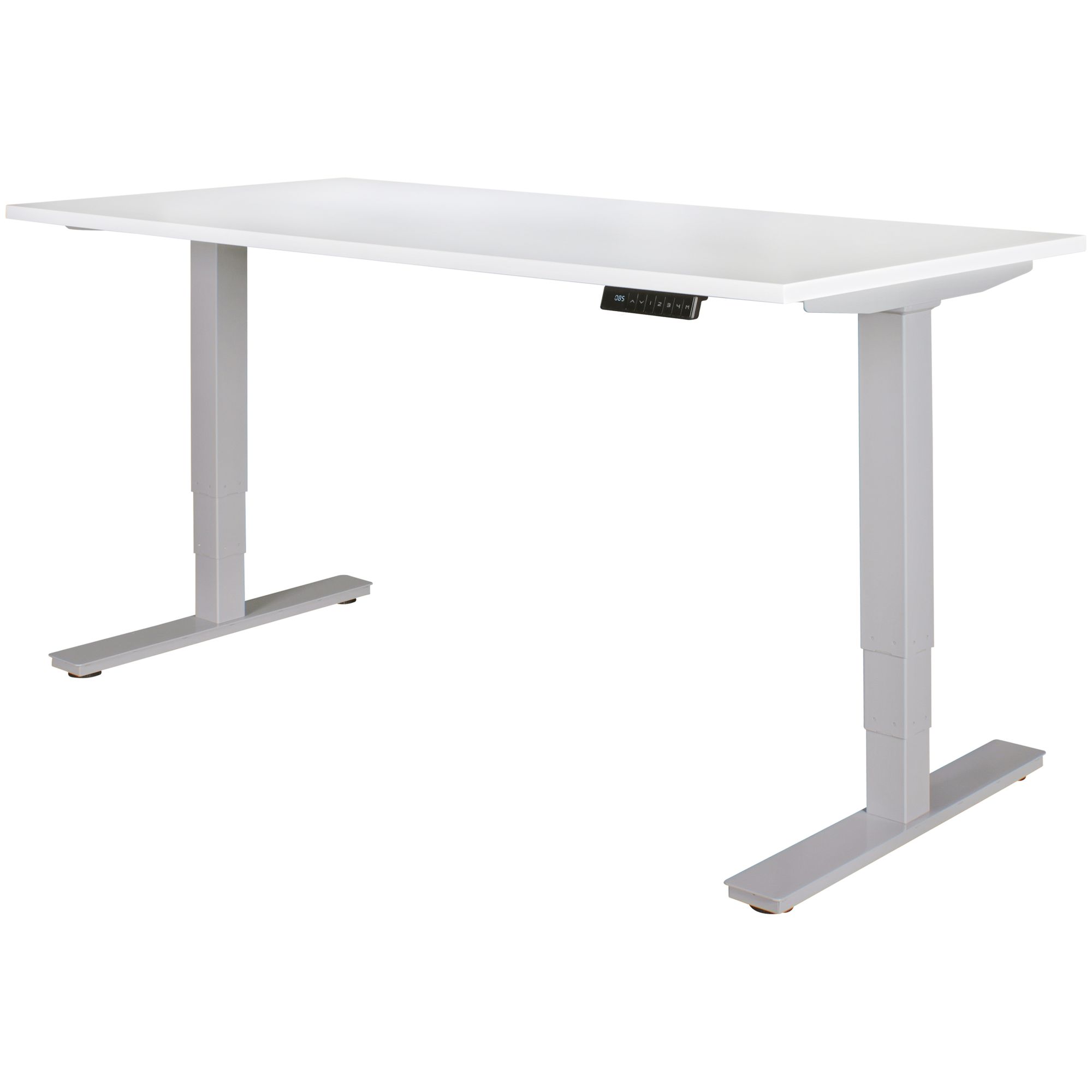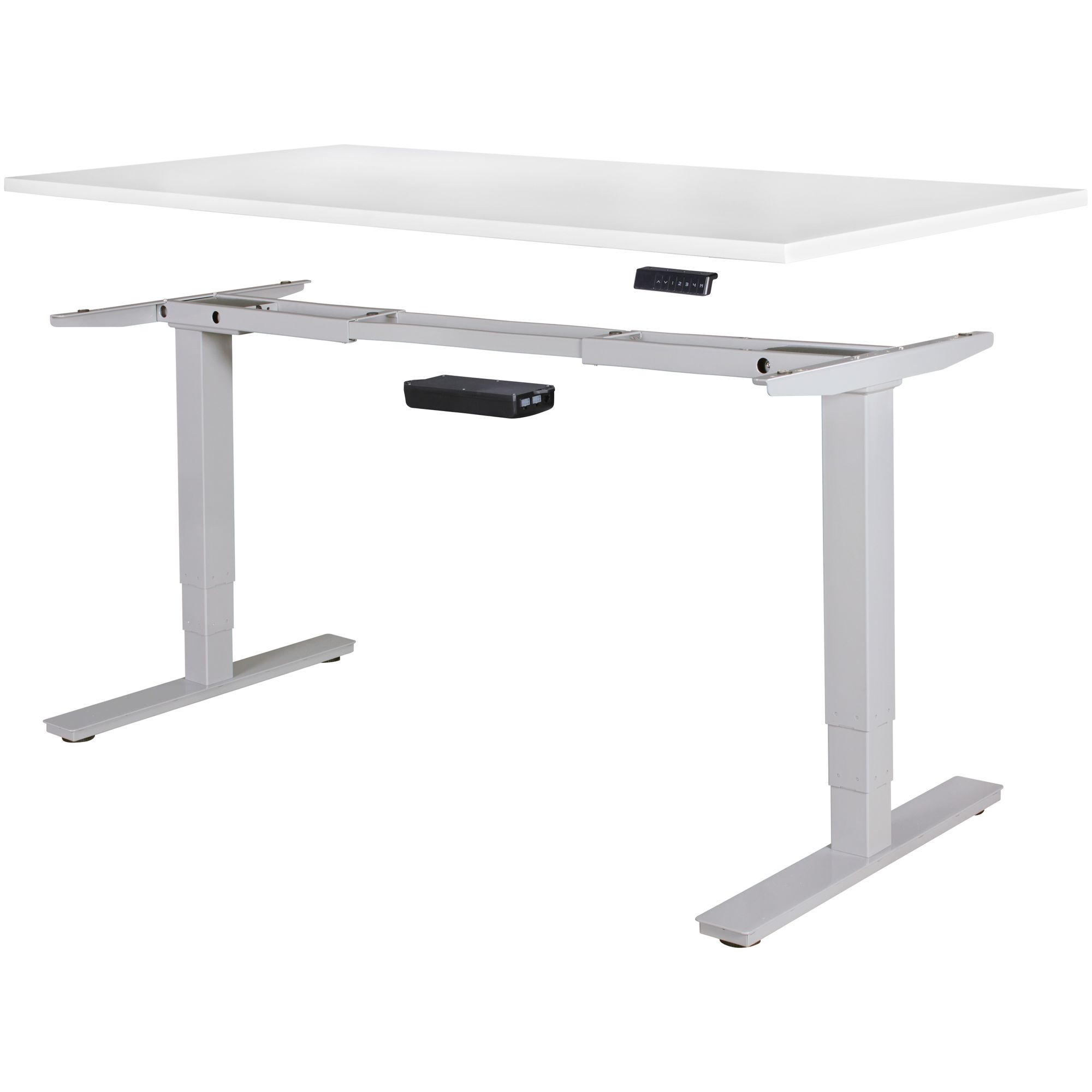 Enhance your workspace with this electric height-adjustable desk frame, ranging from 63 to 128 cm, delivering ergonomic comfort and functionality. Its sleek silver T-leg design fits various tabletops and guarantees optimal stability even in standing position.