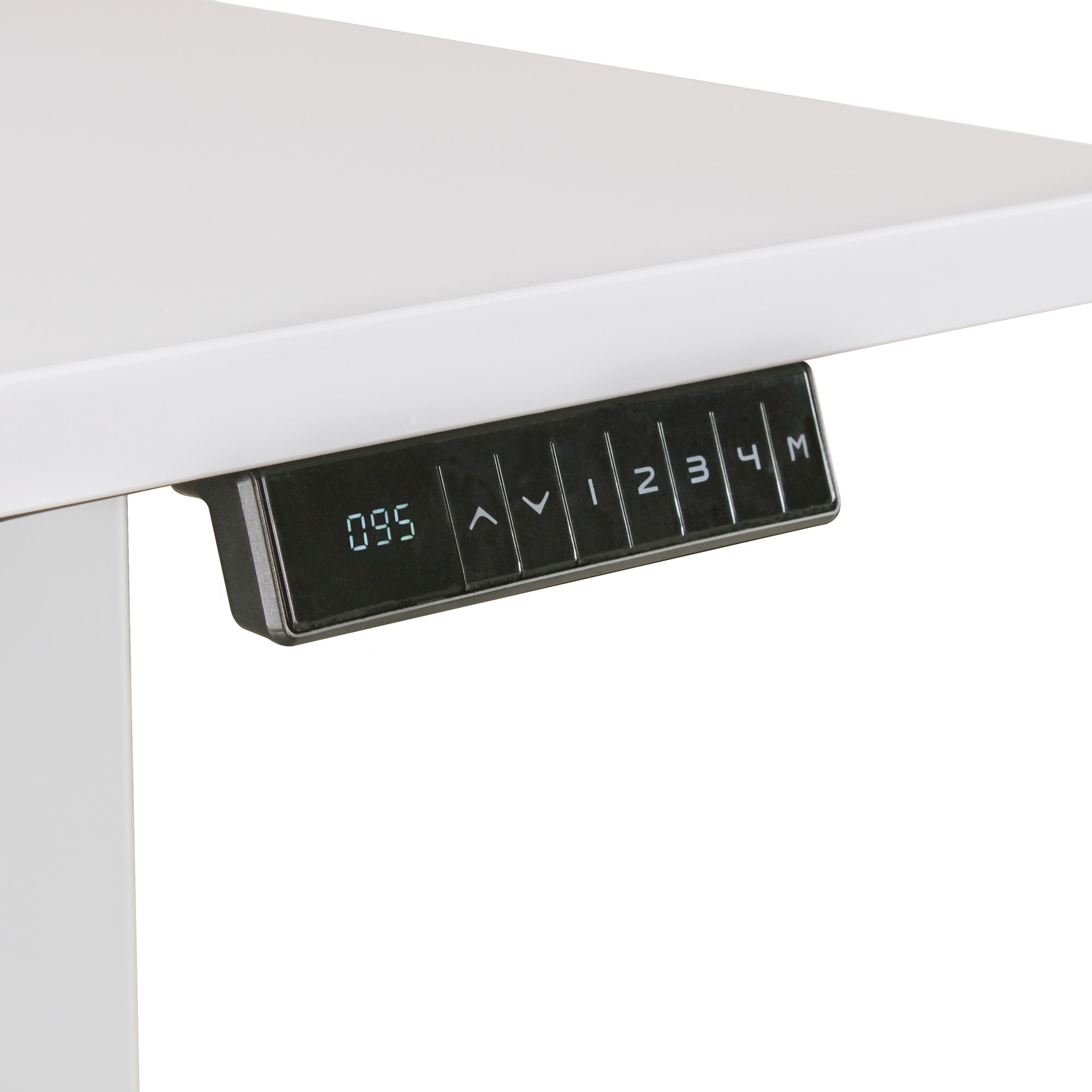 The adjustable width from 105 to 182 cm accommodates different desktop sizes, up to 220 cm wide and 90 cm deep. The freely positionable LED display includes a 4-slot memory function, enabling easy customization of your setup.