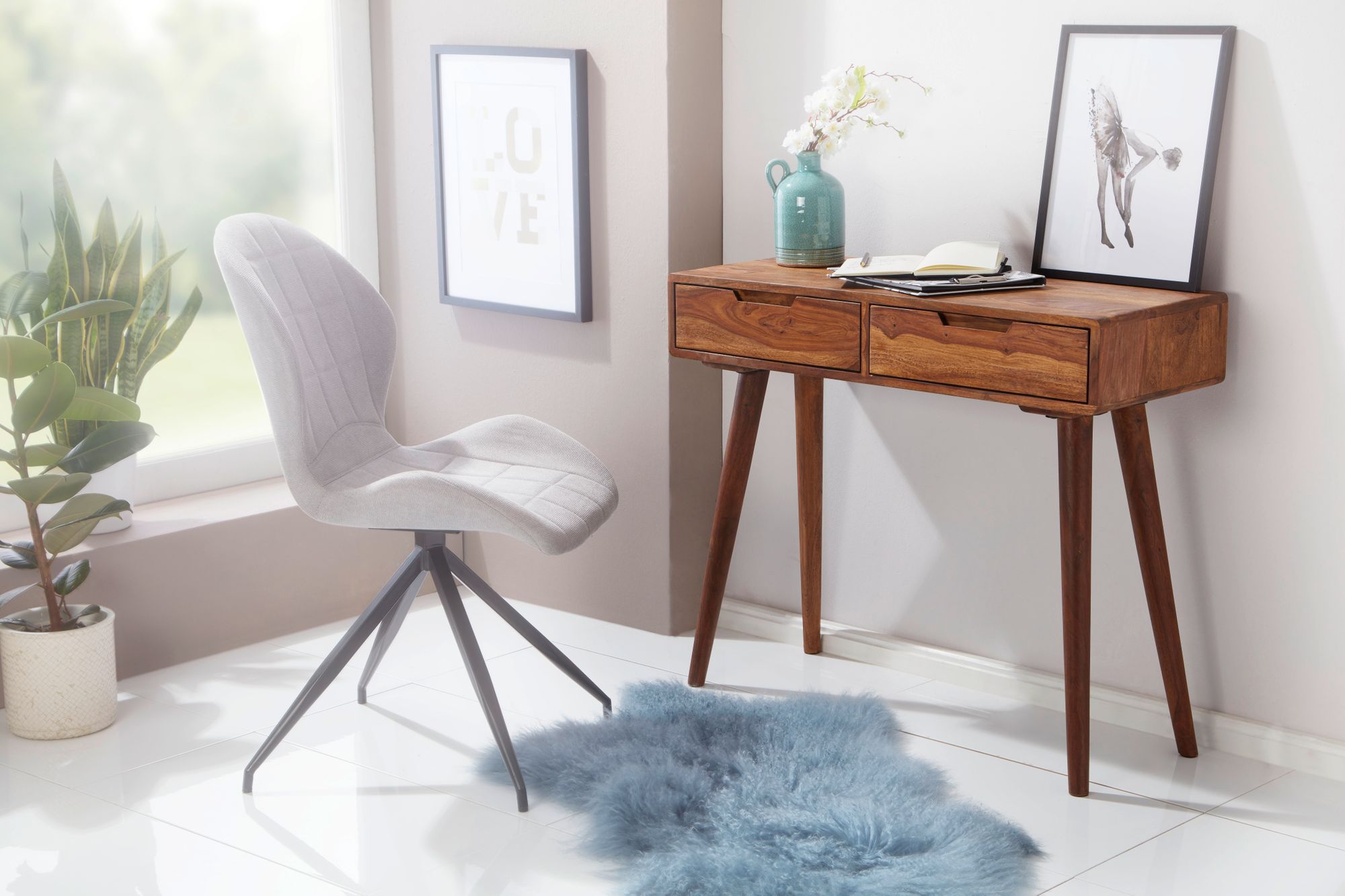 Konsola z litego drewna Sheesham z 2 szufladami | Kolor naturalnego drewna | Wymiary 90x76x36 cm