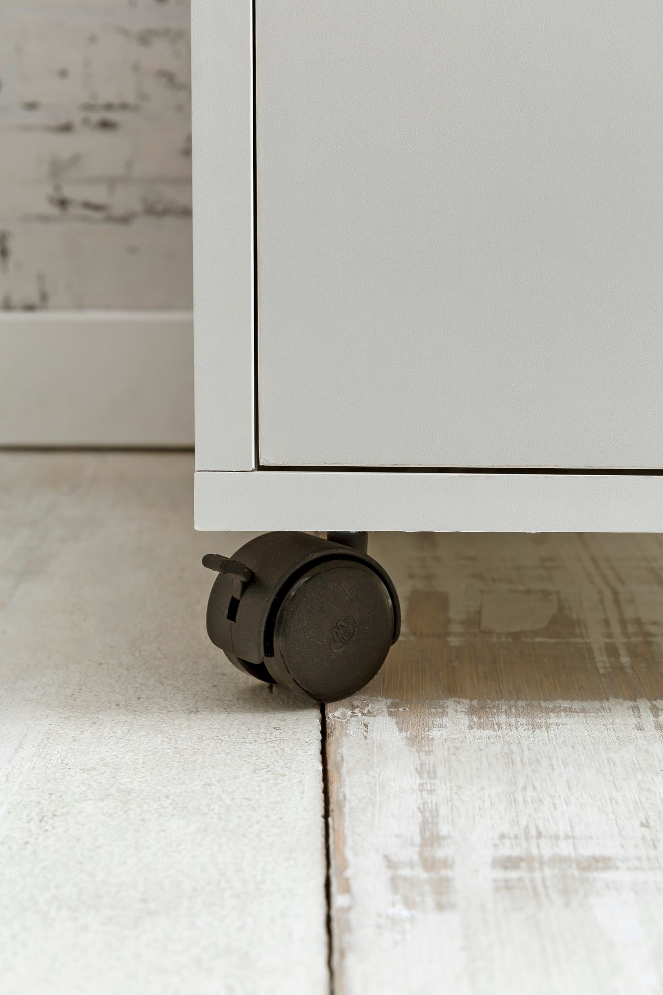 Informacje dot. produktu "Biały kontener na rolkach z płyty wiórowej | 33x60x38 cm | Mobilna szafka biurowa na kółkach"