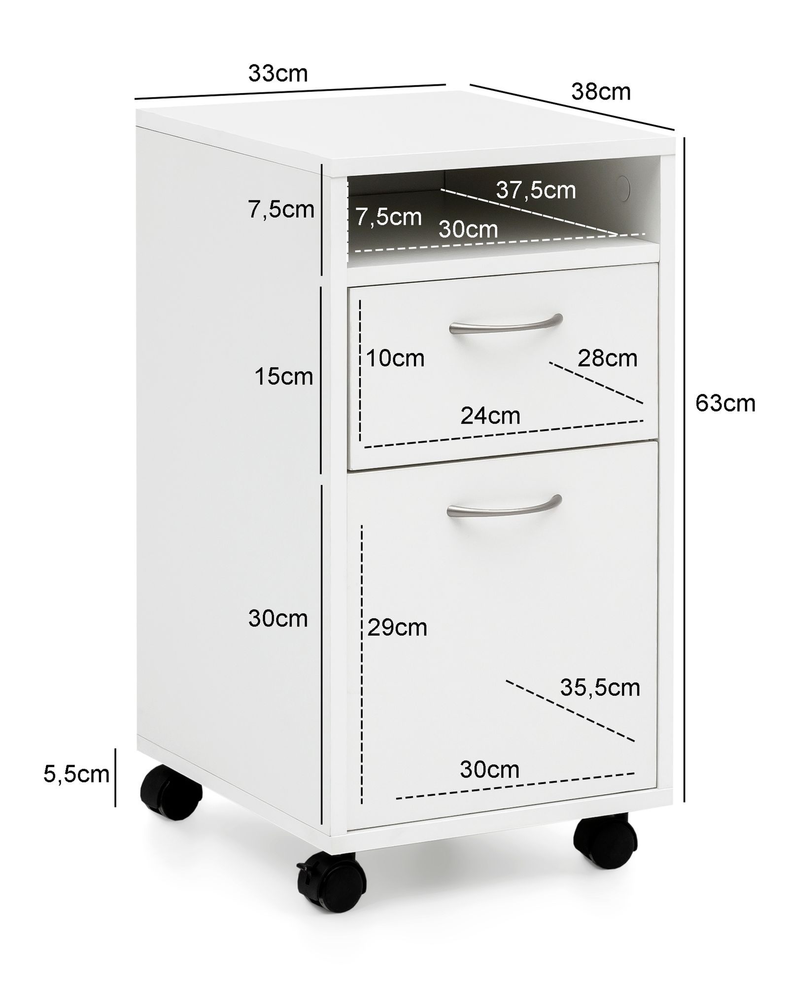 Informacje dot. produktu "Mobilny Kontener Biały | 33x63x38 cm | Płyta Melaminowa i Plastik"