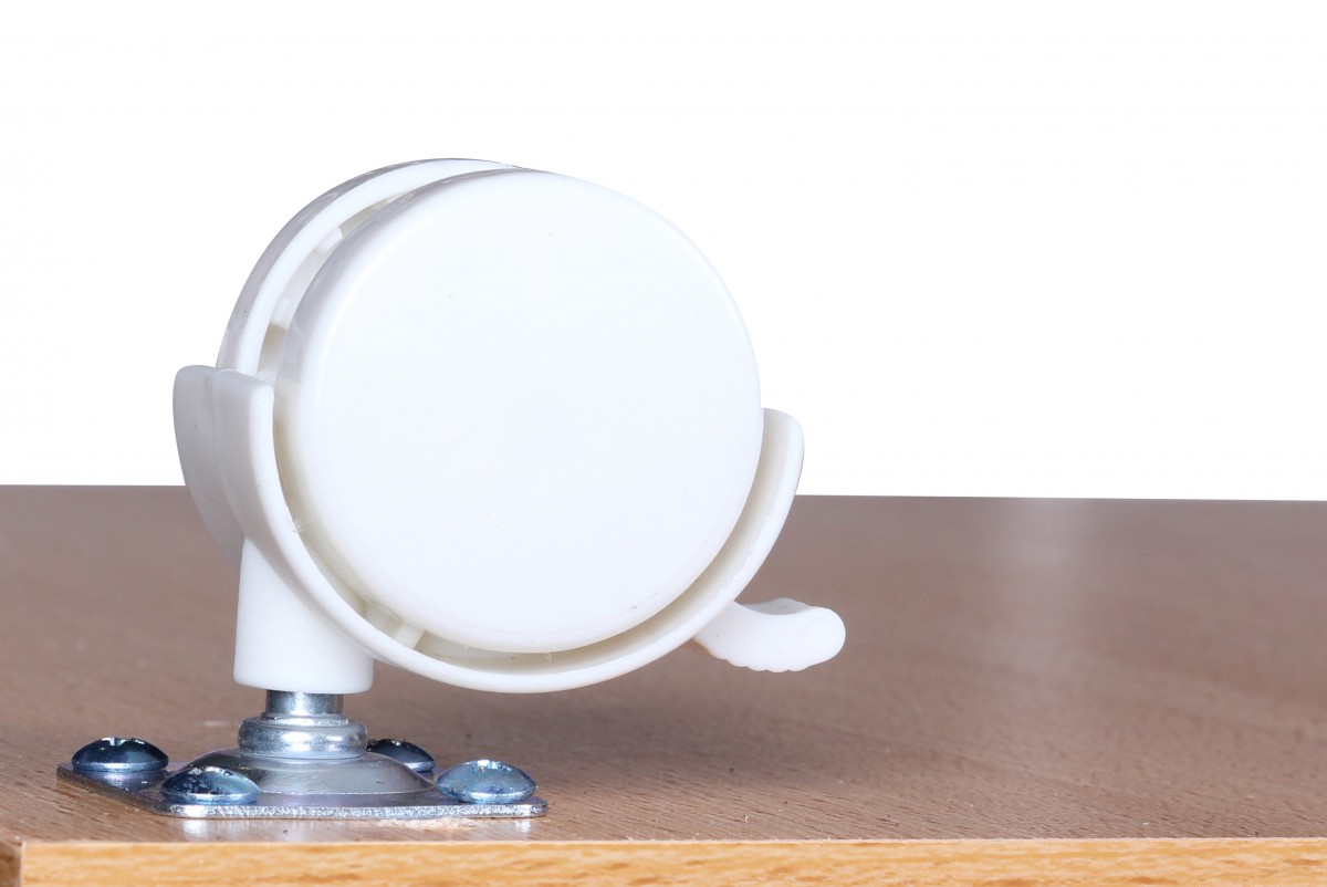 Nowoczesny i ponadczasowy design z eleganckimi szarymi aluminiowymi uchwytami oraz białymi kółkami z możliwością blokady zapewnia łatwą mobilność i stabilność. Kompaktowe wymiary umożliwiają postawienie pod biurkiem.