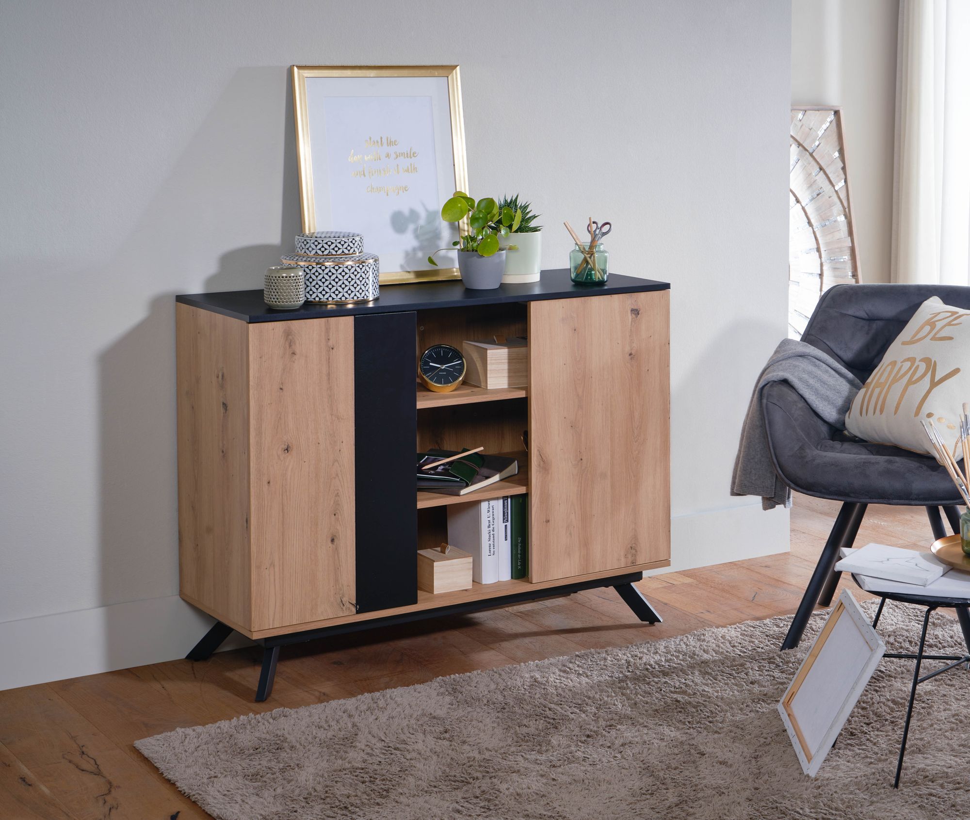 Informacje dot. produktu "110x87x40 cm kredens mdf w dekorze dębowym / czarny"