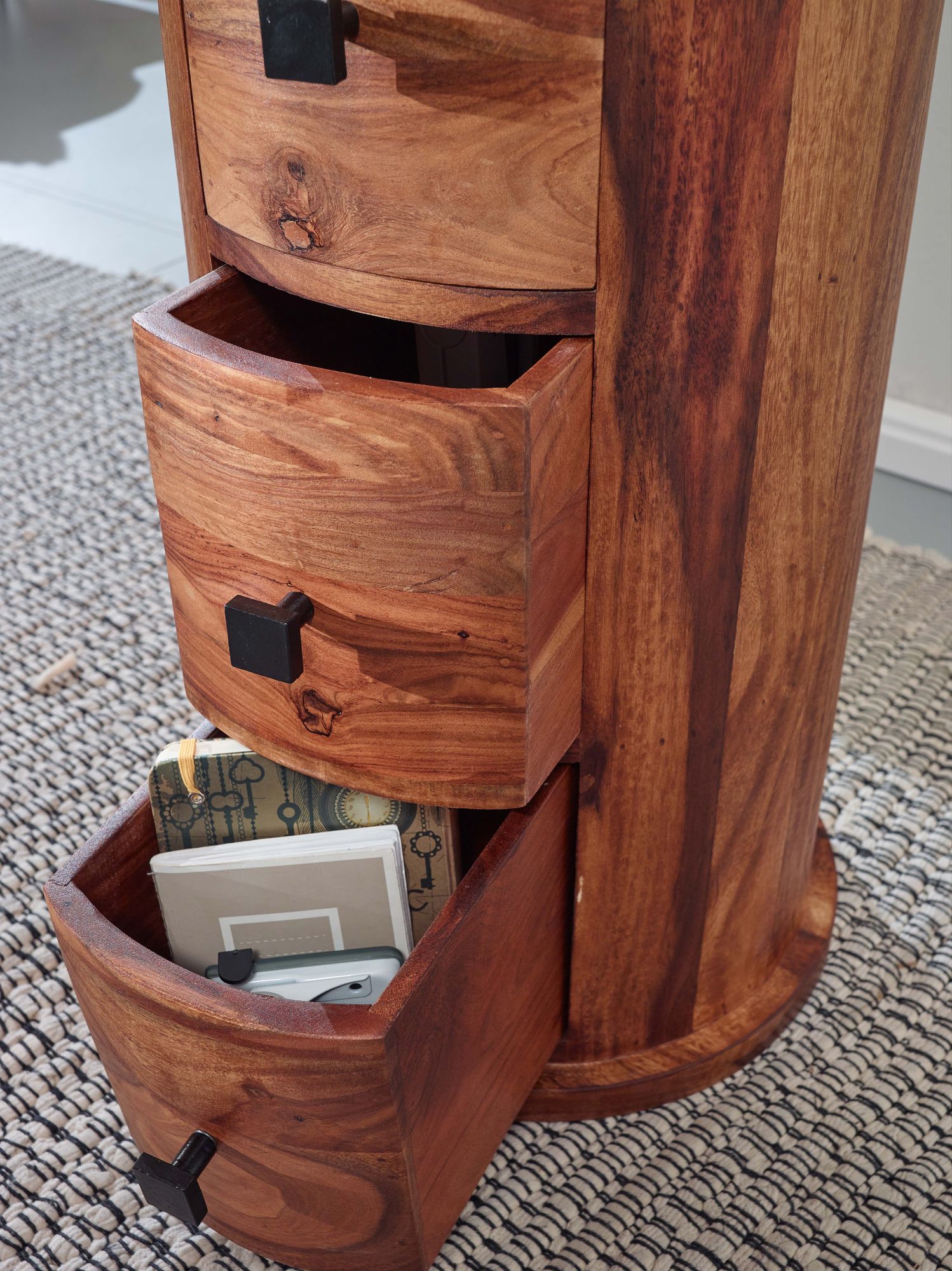 Designowa komoda z drewna litego Sheesham brązowa | 35x85x35 cm | 4 szuflady