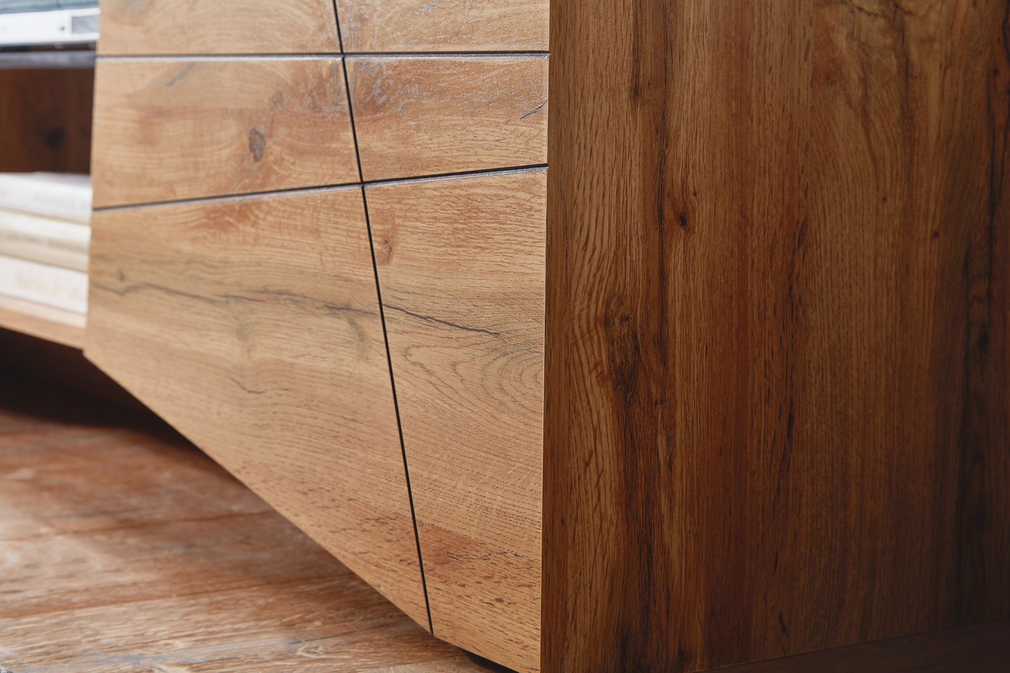 Informacje dot. produktu "Komoda RTV z dekoracją dębową | Brązowy i czarny | 160x50x40 cm"