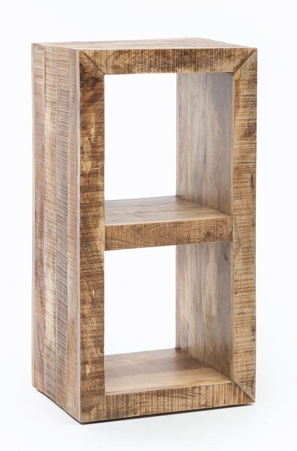 Ten stojak z naturalnego litego drewna mango to eleganckie i funkcjonalne rozwiązanie do wnętrz w stylu wiejskim. Prosty design z dwoma półkami doskonale sprawdzi się w różnych zastosowaniach.