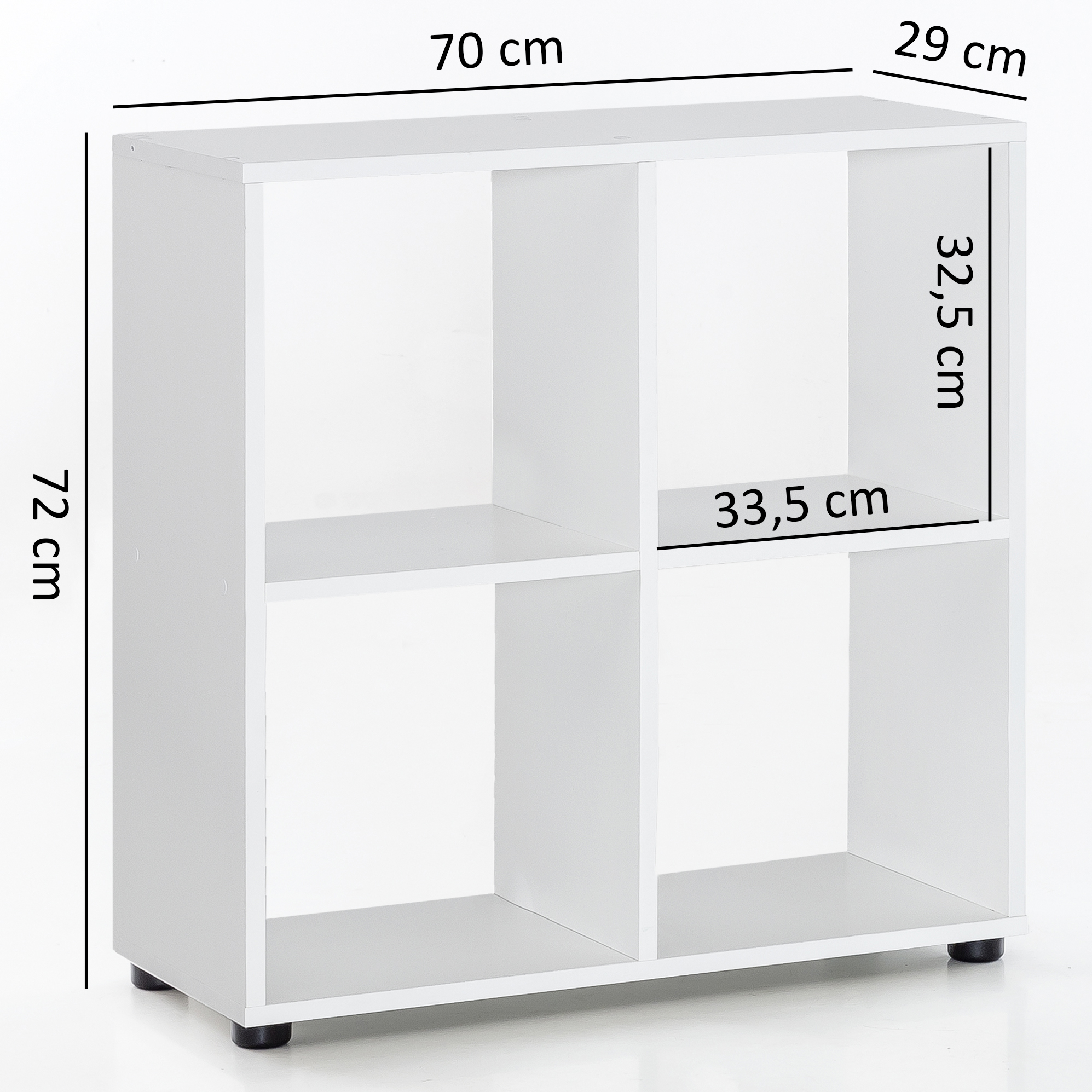 Informacje dot. produktu "Regał zara z 4 przegrodami biały 70 x 72 x 29 cm"