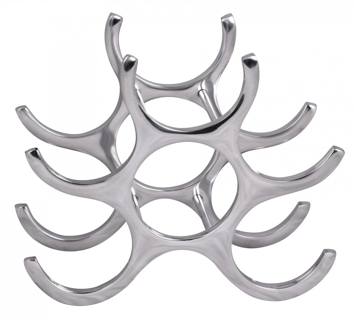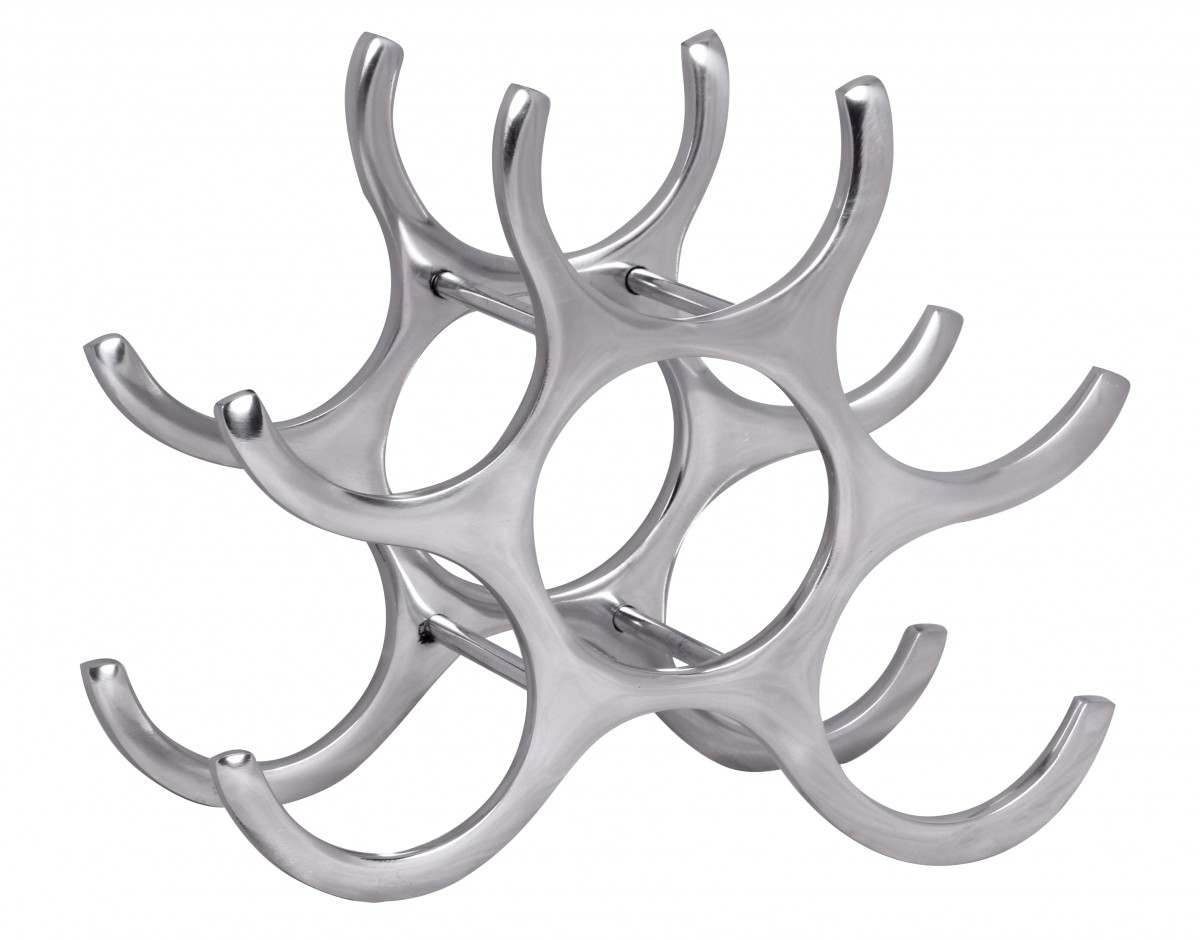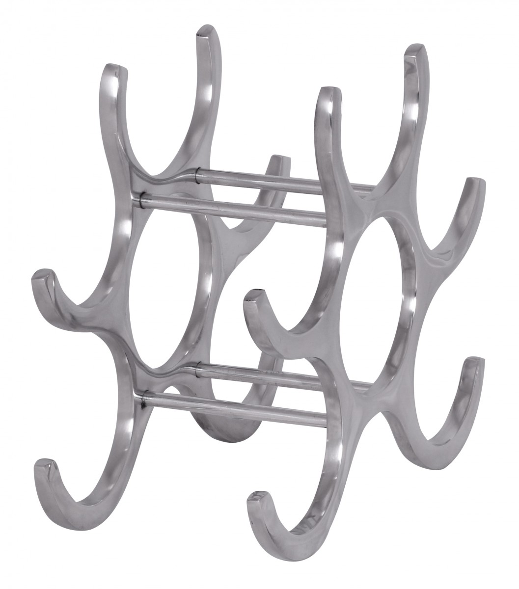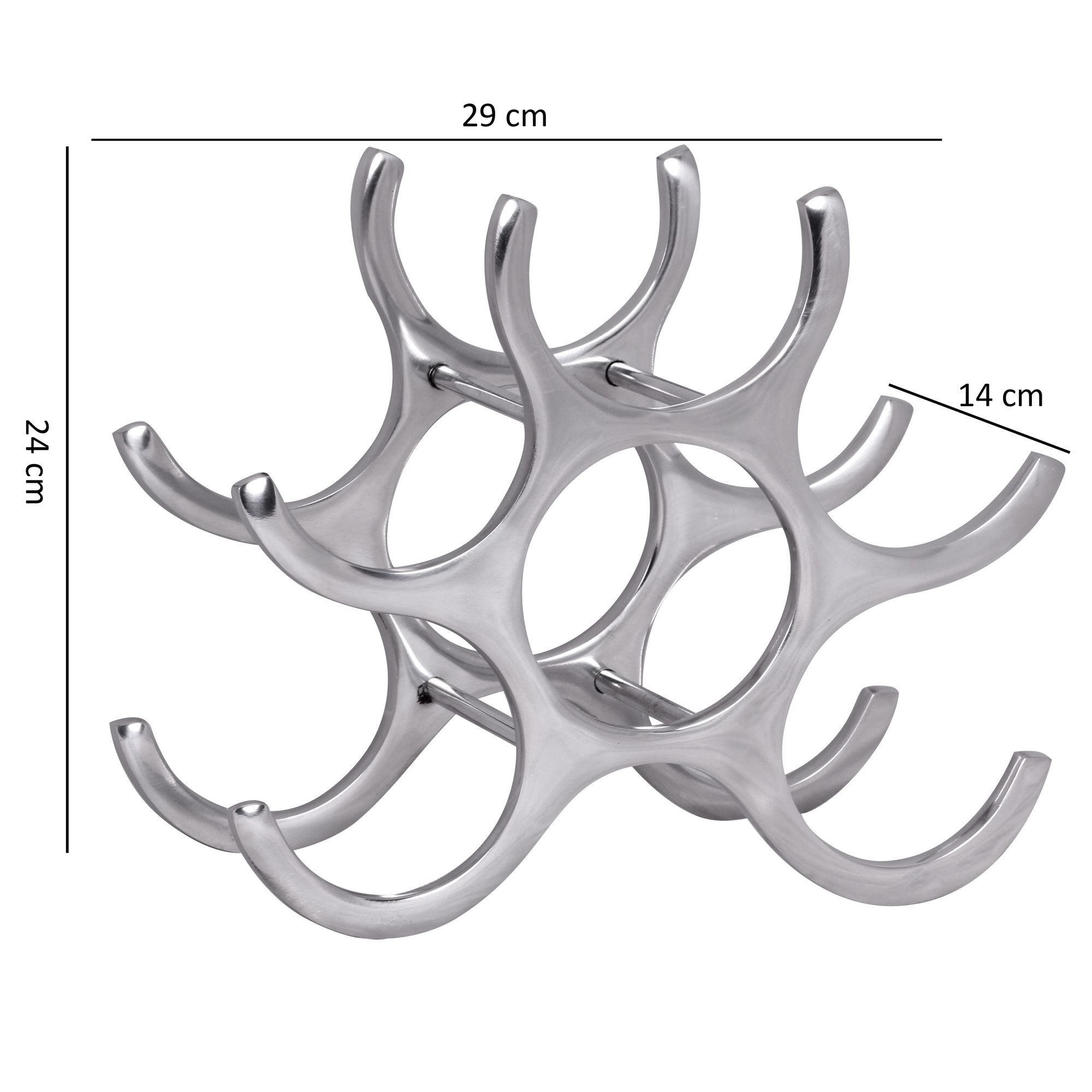 Optymalizuj przechowywanie dzięki designerskiemu stojakowi na wino z srebrnego aluminium mieszczącemu do 6 butelek. Łączy elegancję z funkcjonalnością, idealny do nowoczesnej kuchni lub jadalni.