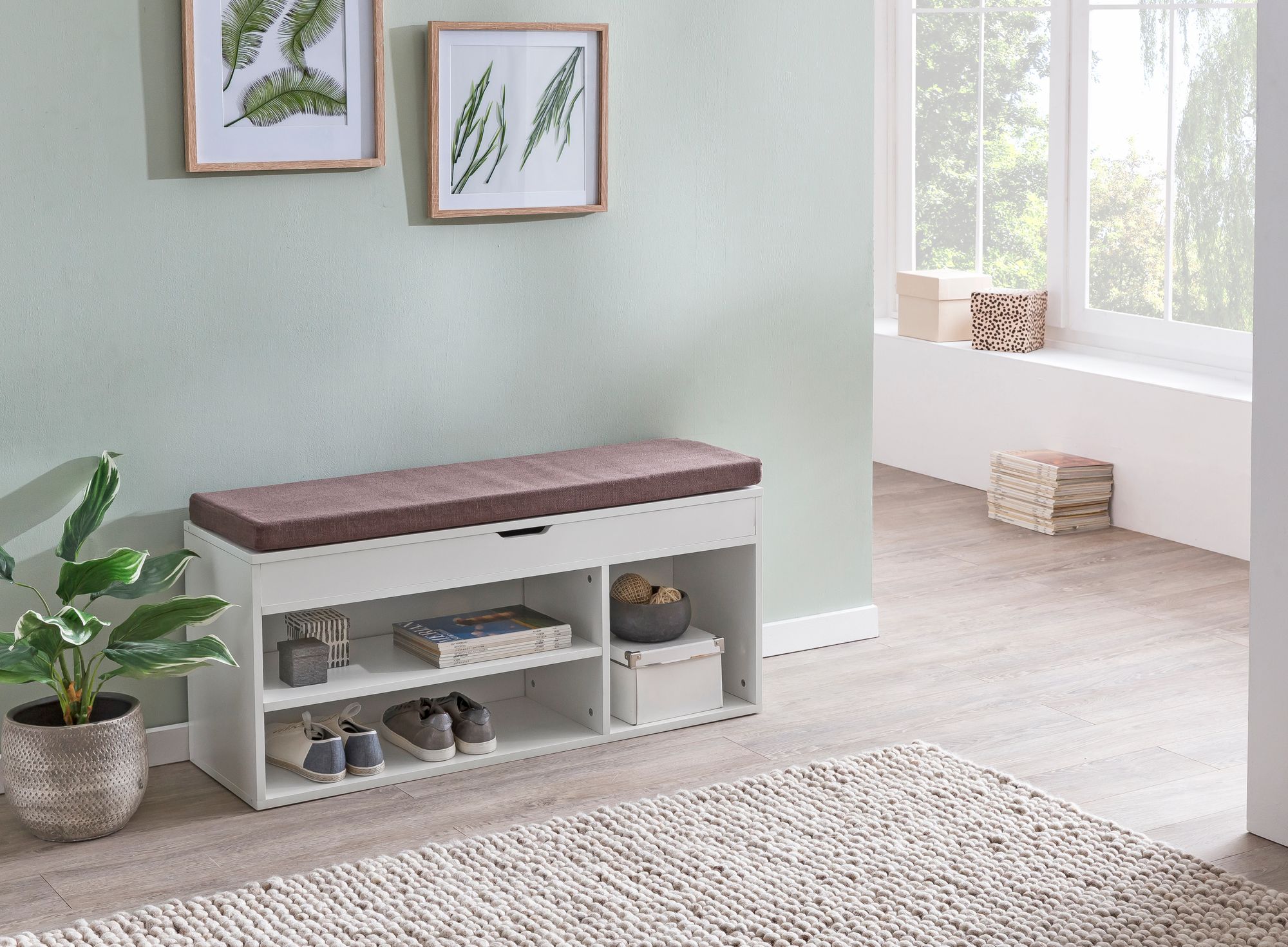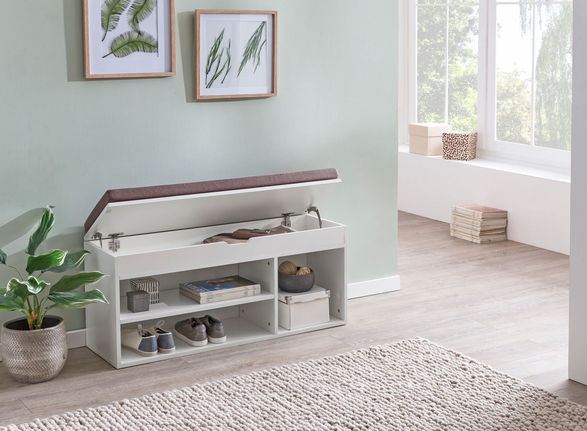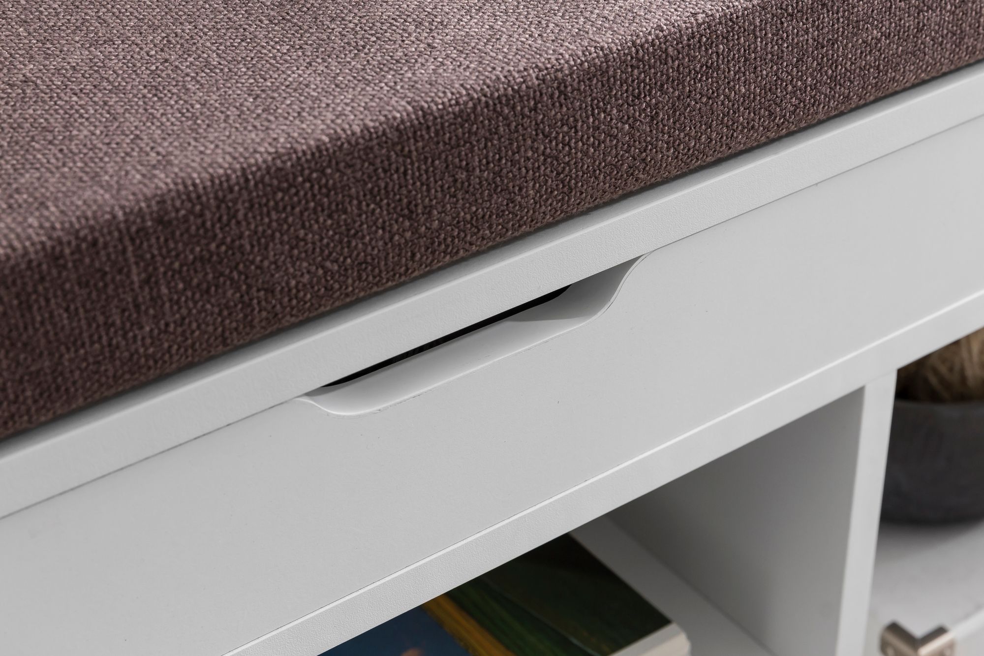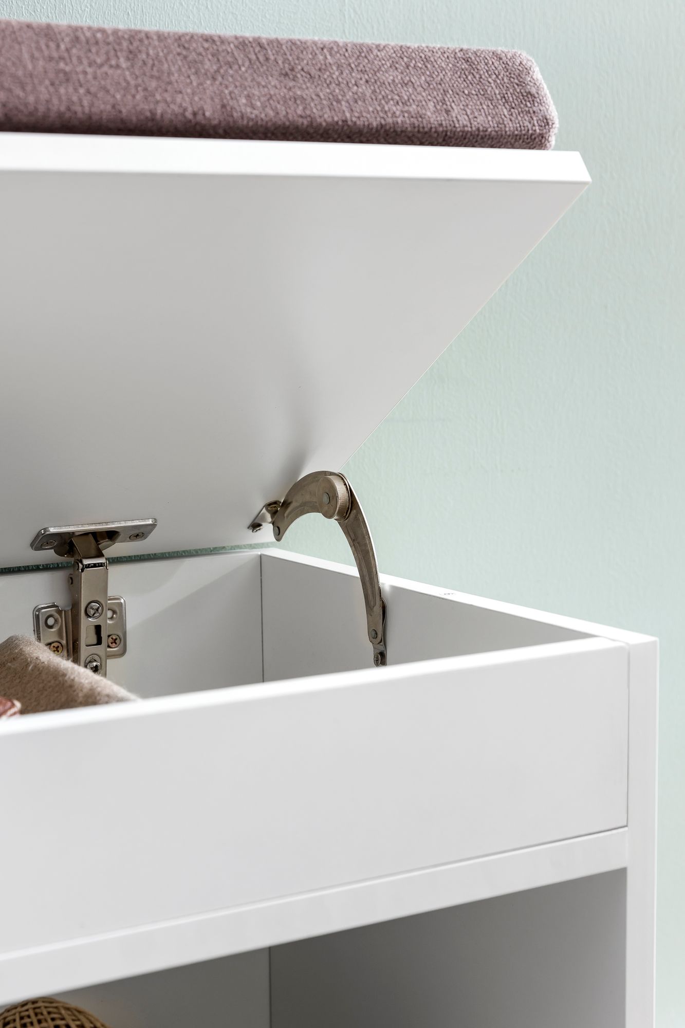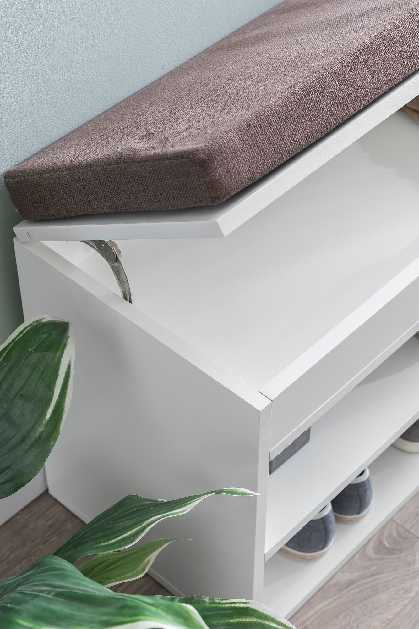 Informacje dot. produktu "Biała ławka do przechowywania z tapicerowanym siedziskiem | 104x51x32 cm"