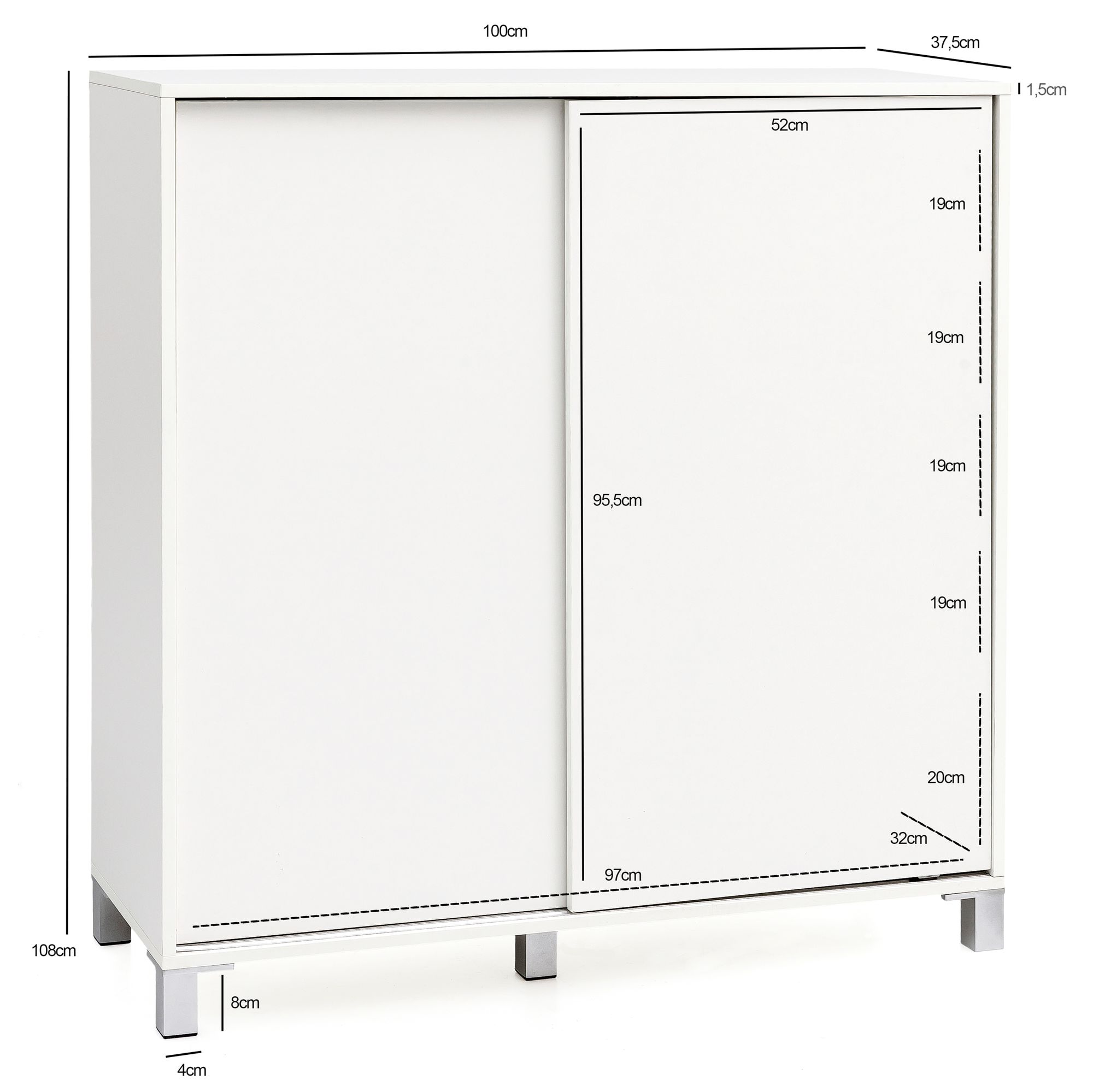 - Wymiary wewnętrzne półek: 97 x 19 x 32 cm każda