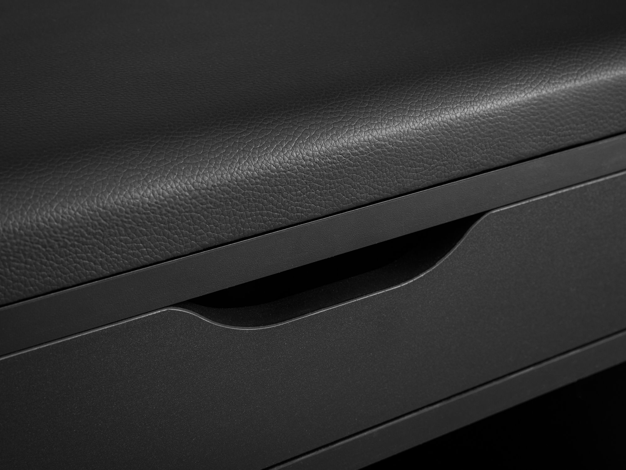 Ta stylowa czarna ławka na buty z ekoskóry optymalizuje przestrzeń w przedpokoju. Miękkie siedzisko zapewnia wygodę, a dwa poziomy przechowywania pozwalają uporządkować buty i akcesoria.