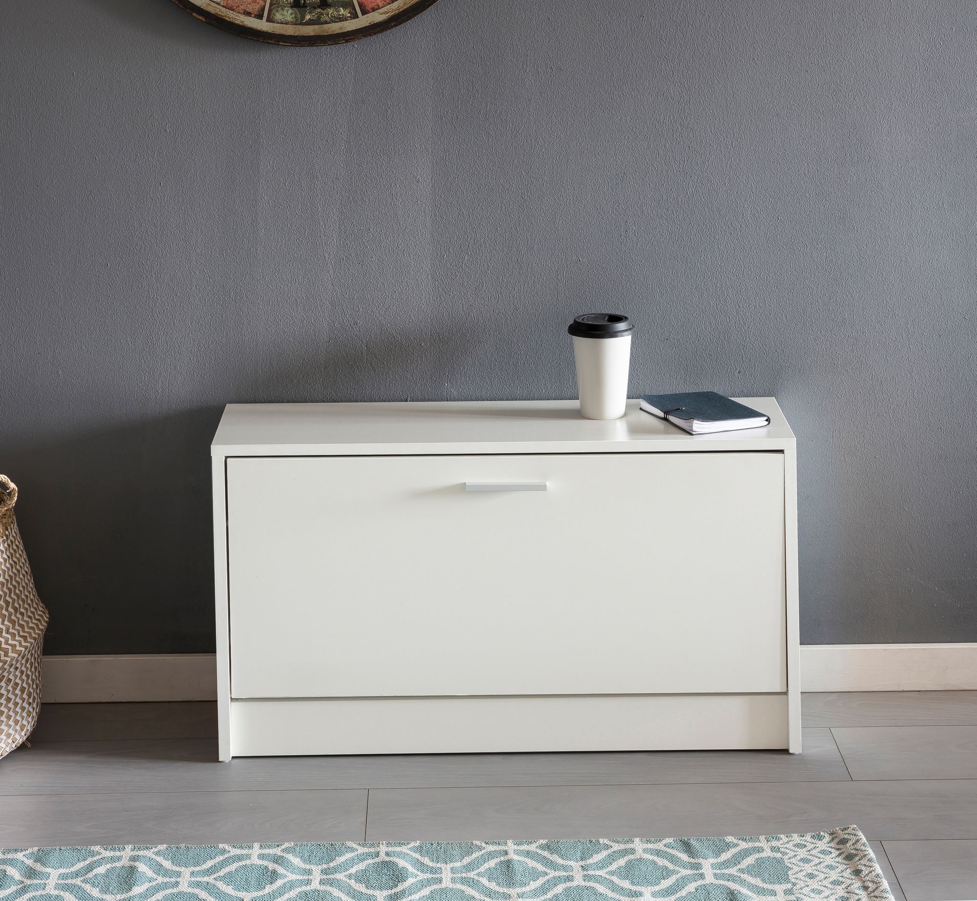 Ławka na buty drewno białe 80x47x24 cm | 1 przegroda | Nowoczesny design