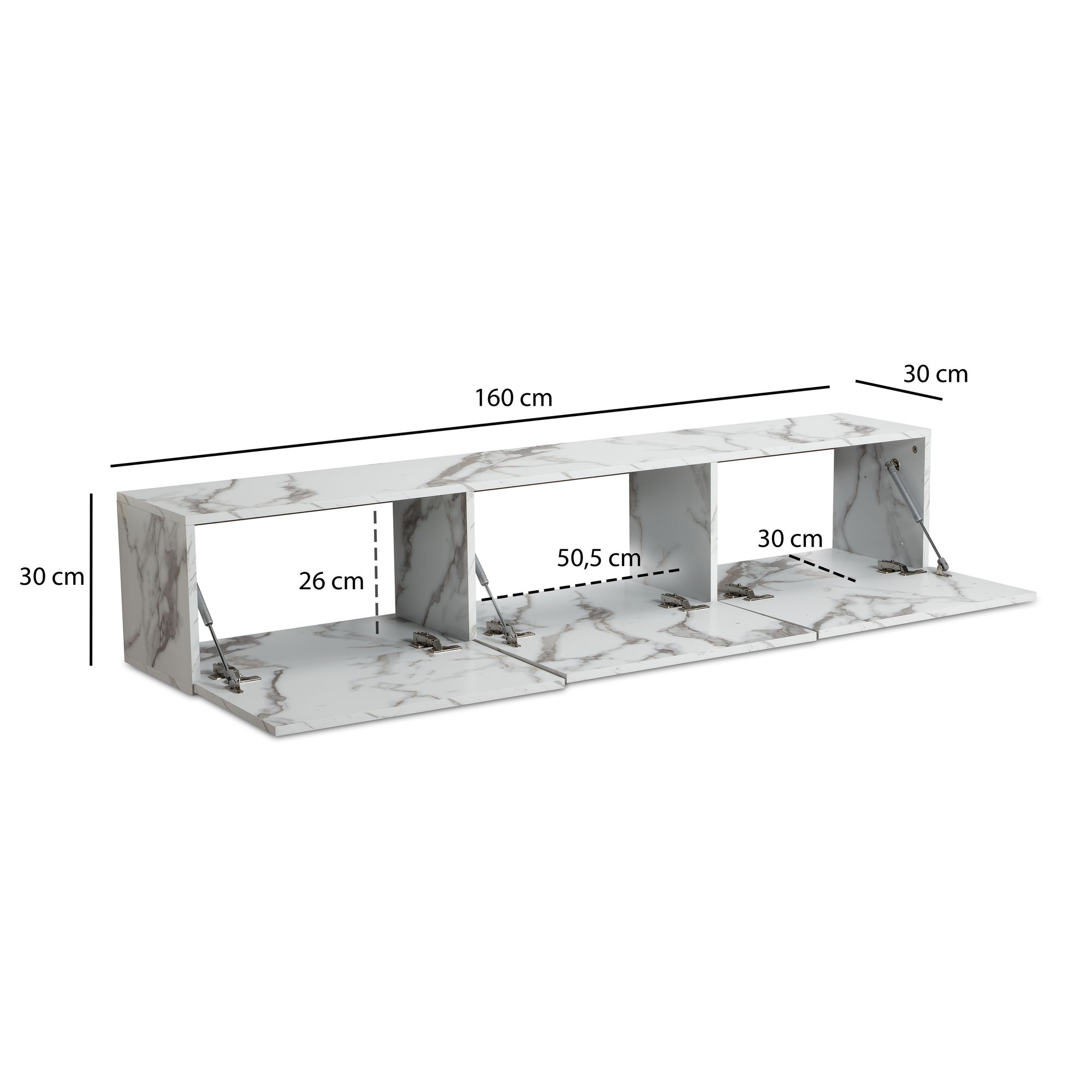 Wisząca Szafka RTV Efekt Marmuru Biała | 160x30x30 cm | MDF z Powłoką Melaminową