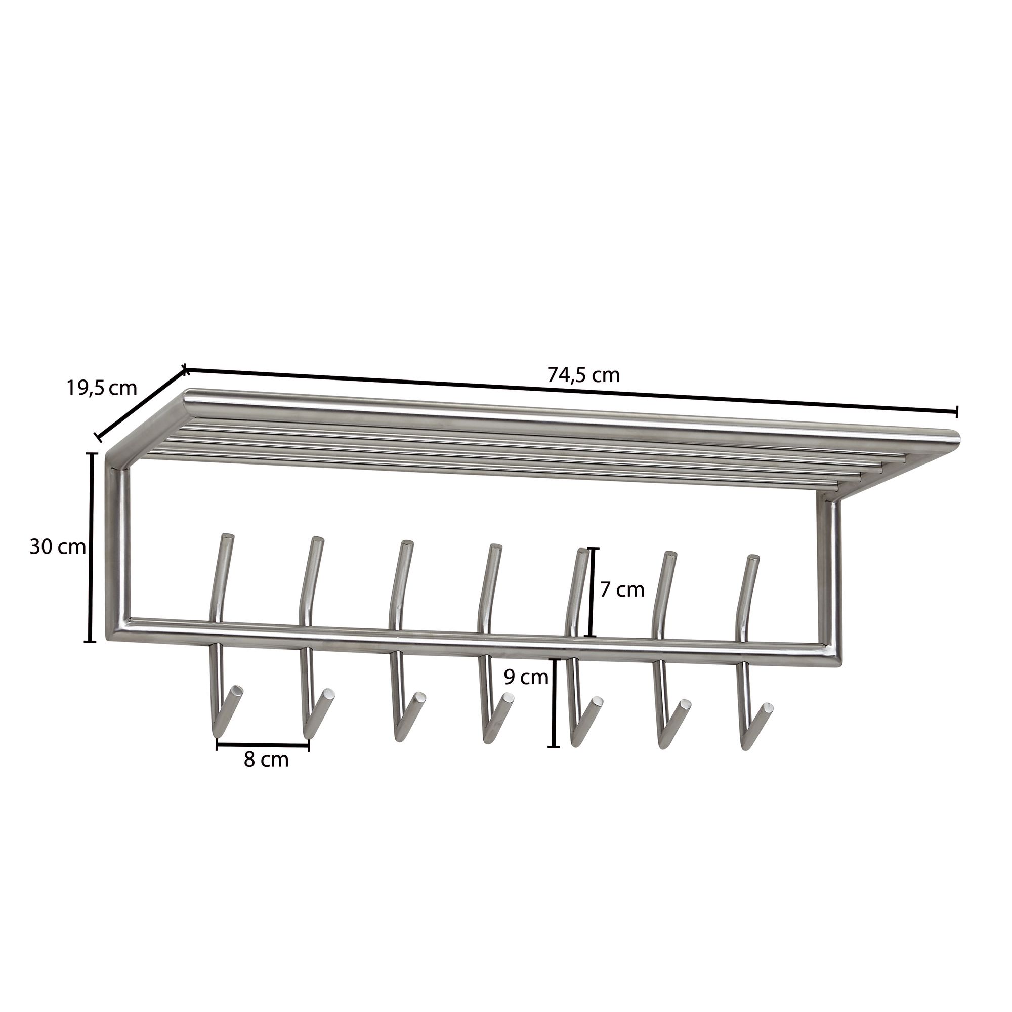 Informacje dot. produktu "Wieszak Ścienny Metal Srebrny 74,5x29x30 cm | Stal | 14 Haczyków z Półką"
