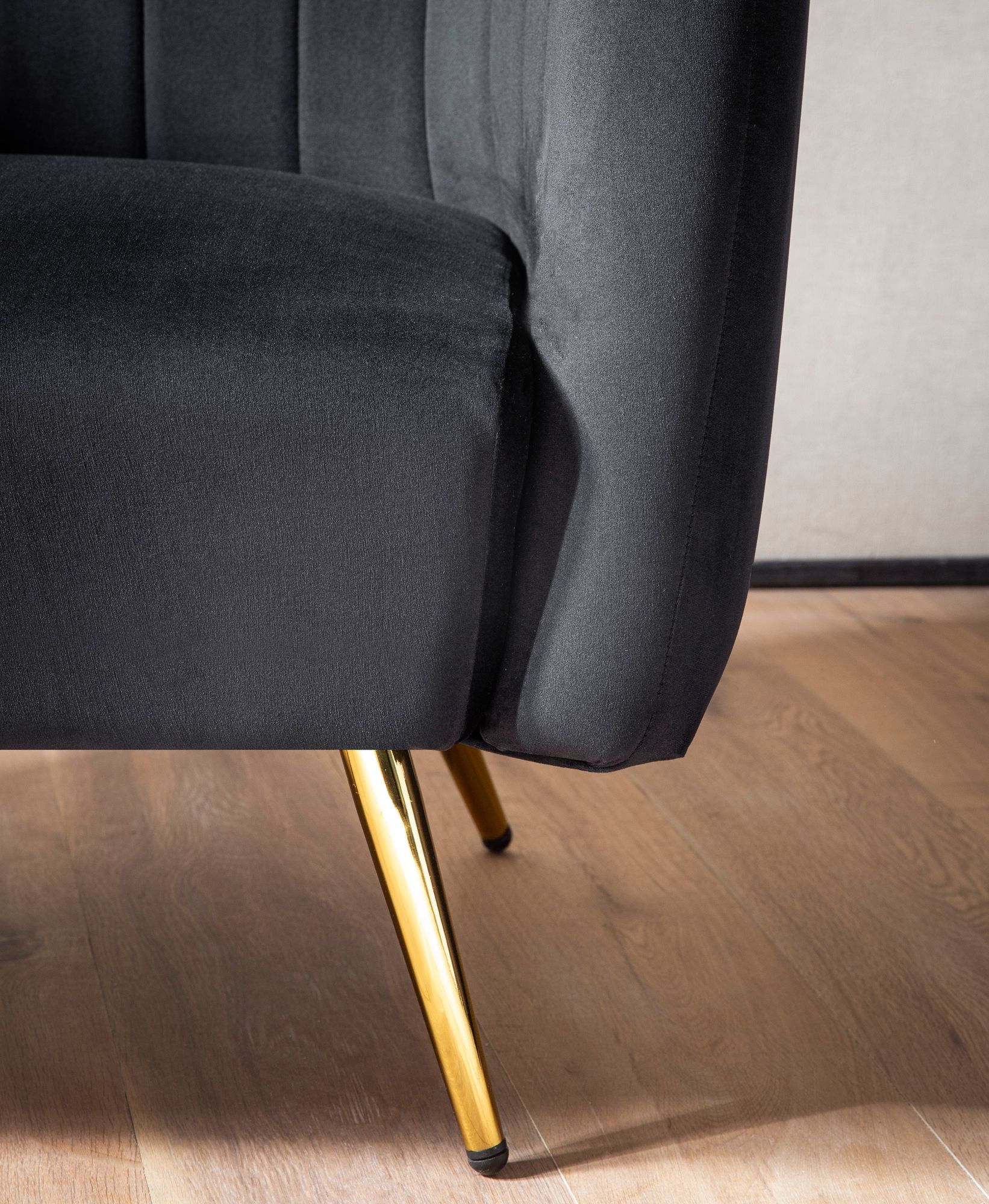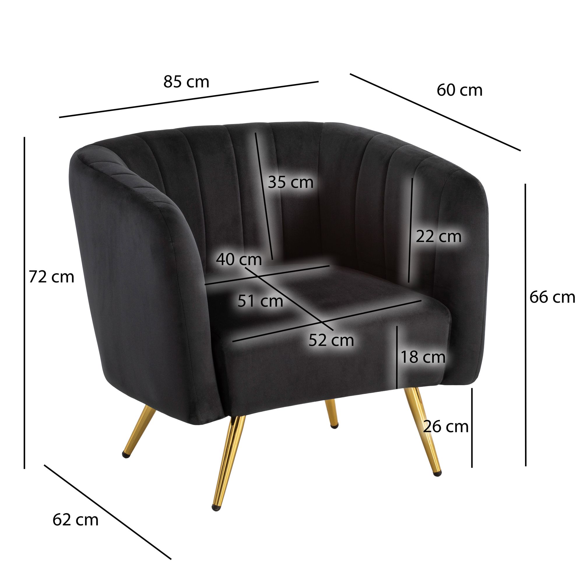 Informacje dot. produktu "Fotel lounge welur czarny | Złote metalowe nogi | Wymiary 85x72x60 cm"