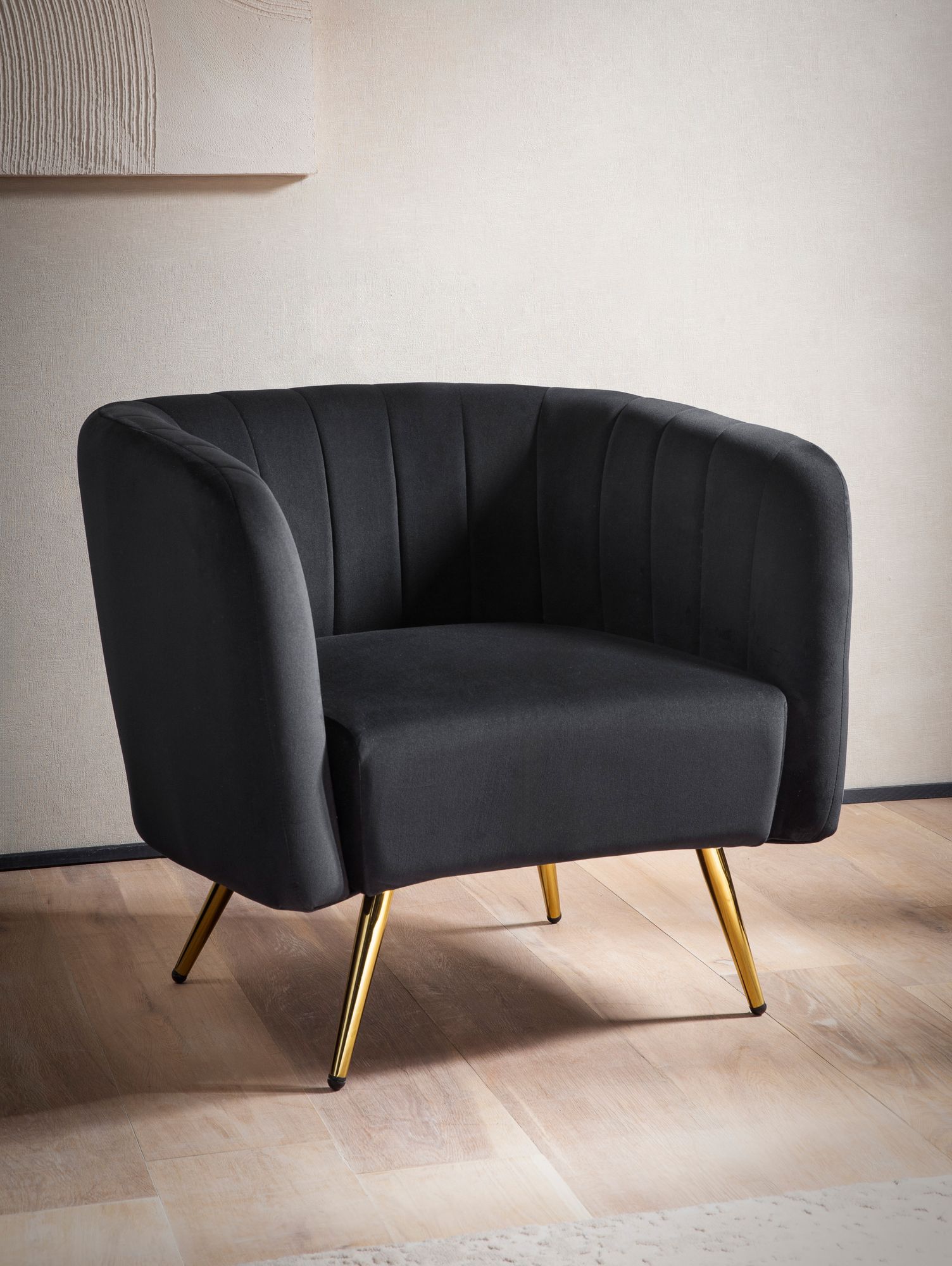 Fotel lounge welur czarny | Złote metalowe nogi | Wymiary 85x72x60 cm