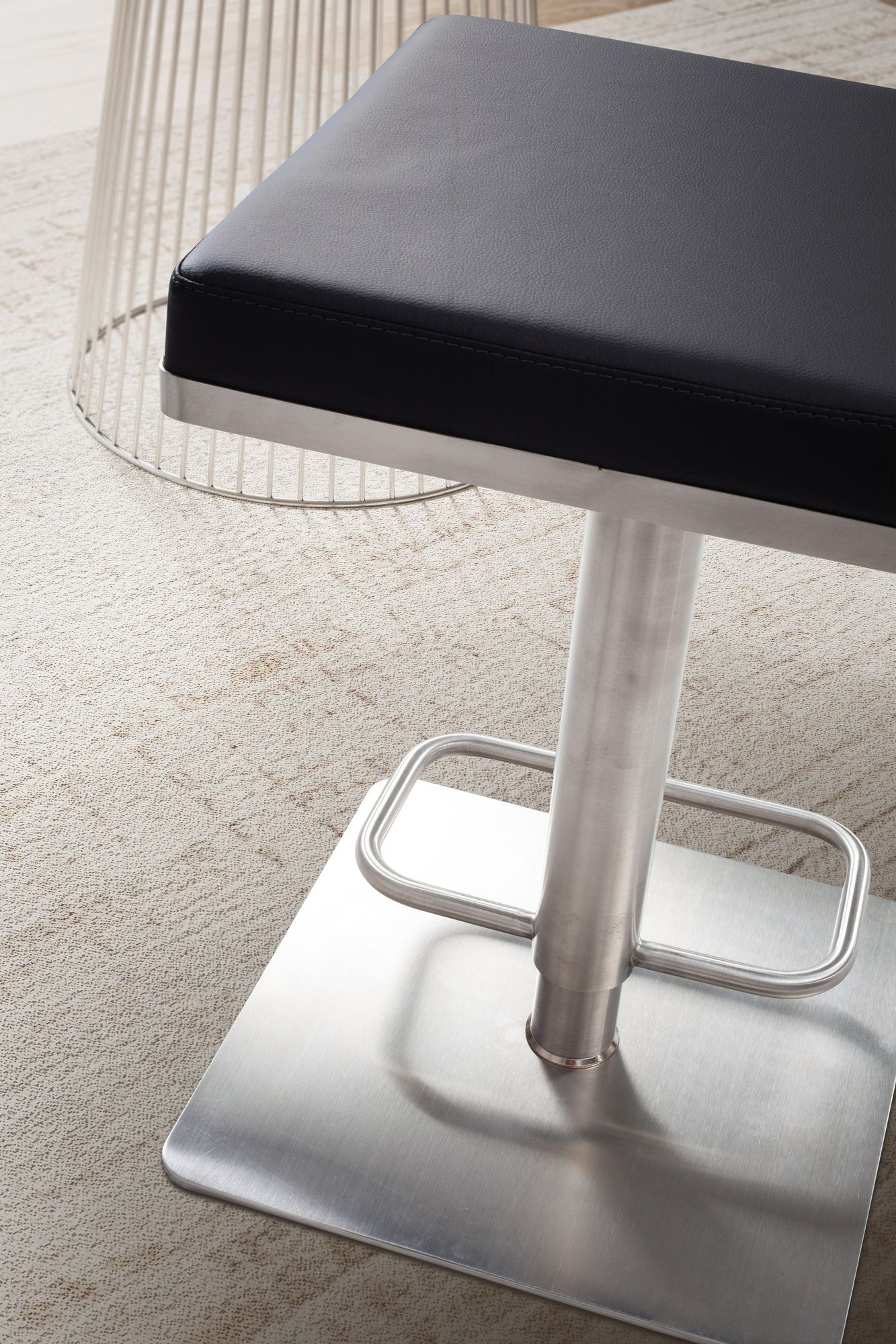 Informacje dot. produktu "Czarny hoker barowy z ekoskóry i ramą ze stali nierdzewnej | Nowoczesny design | Tapicerowane regulowane siedzisko (53-82 cm)"