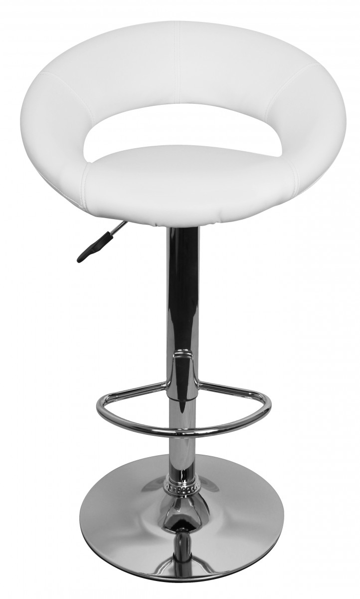 Informacje dot. produktu "Regulowany stołek barowy | Biała sztuczna skóra | Bez oparcia, chromowana rama 80-102 cm"