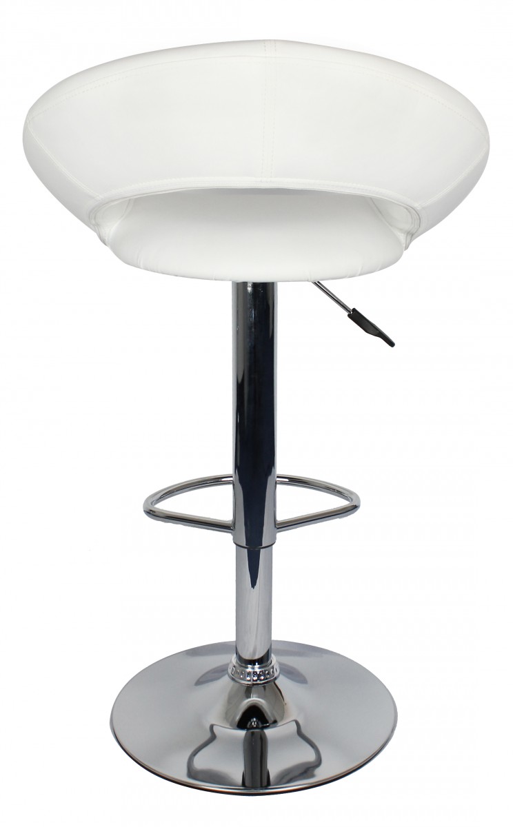 Regulowany stołek barowy | Biała sztuczna skóra | Bez oparcia, chromowana rama 80-102 cm