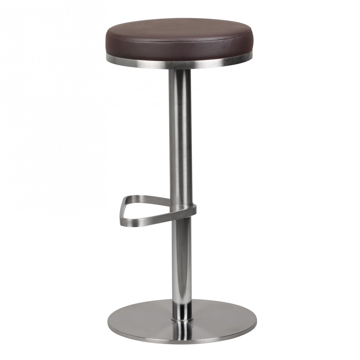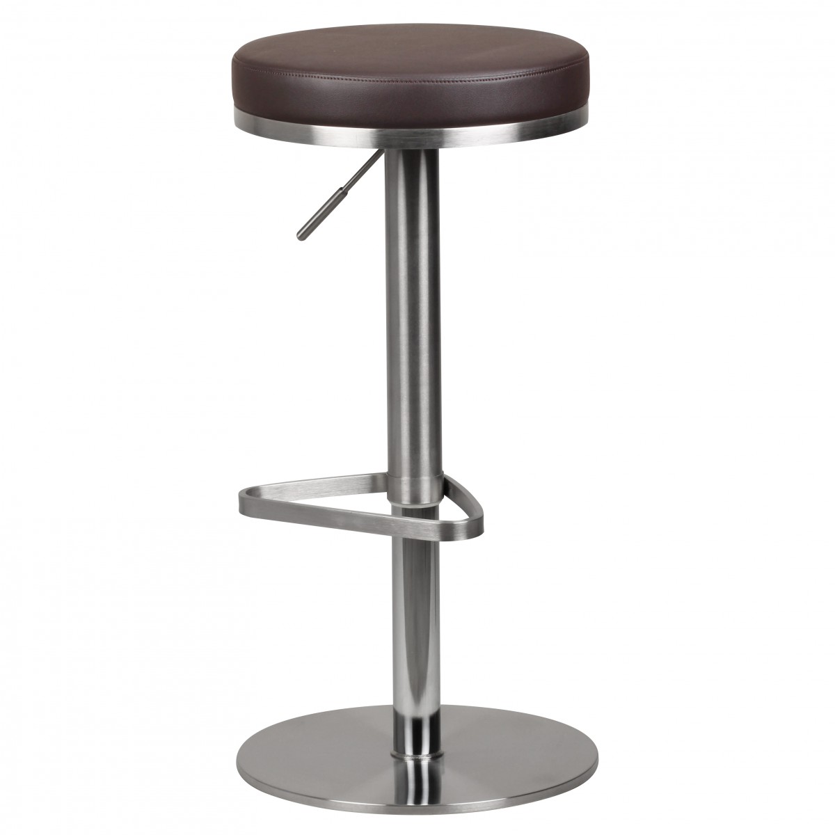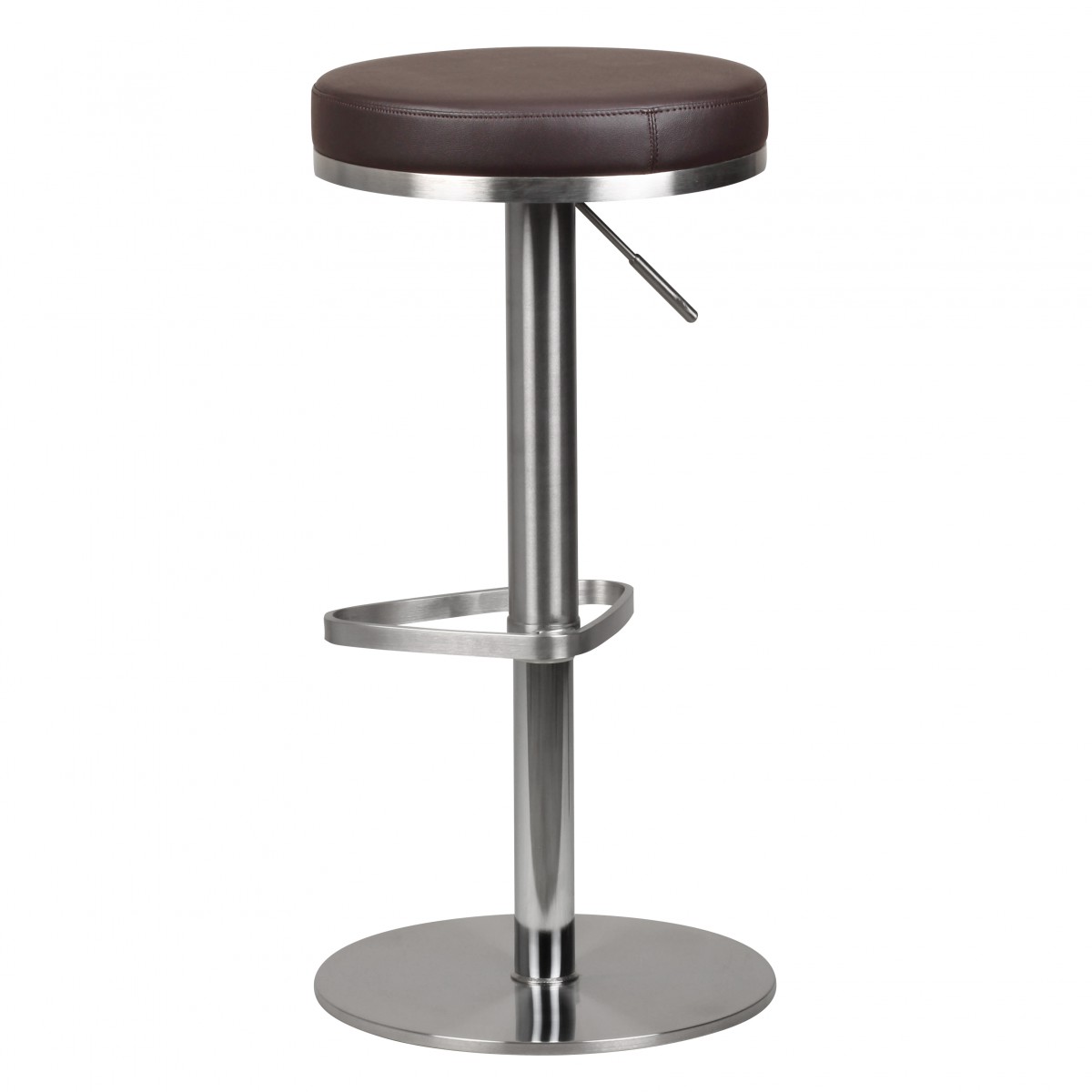 Nowoczesny stołek barowy z chromowaną stalową konstrukcją i okrągłym, obitym brązową ekoskórą, wygodnym siedziskiem. Wysokość siedziska regulowana od 57 do 82 cm pozwala na dopasowanie do wzrostu i przestrzeni.