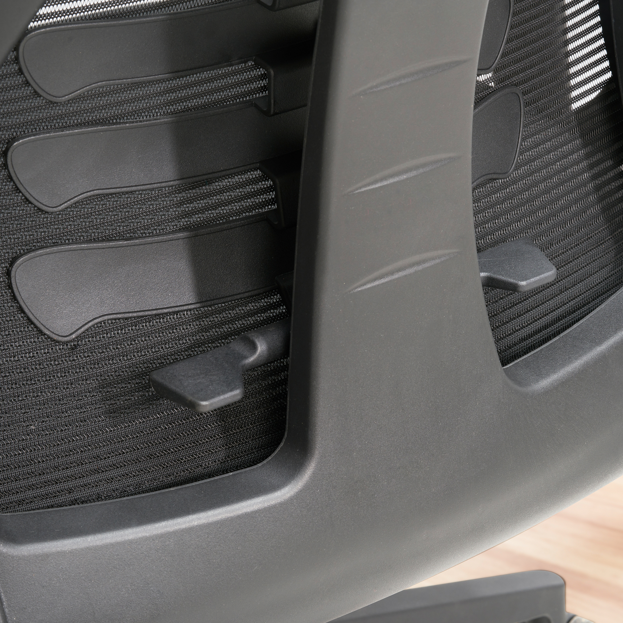 - Regulowana wysokość (113-123 cm) oraz profilowane oparcie w kształcie litery S dla doskonałego wsparcia lędźwiowego.