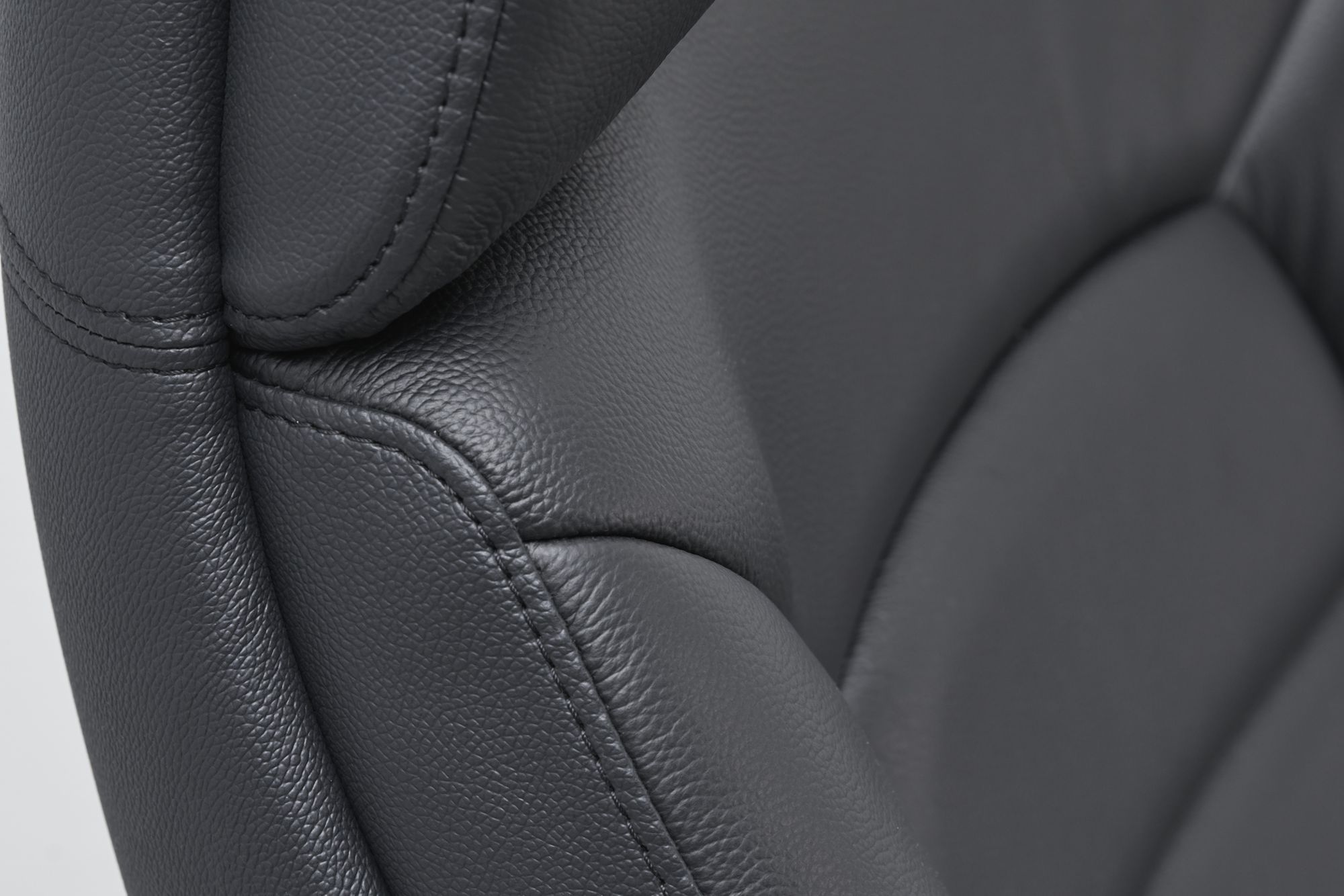 - Materiały: naturalna skóra (wewnątrz), skóra syntetyczna (na zewnątrz i podłokietniki), polerowany aluminium (baza i podłokietniki)