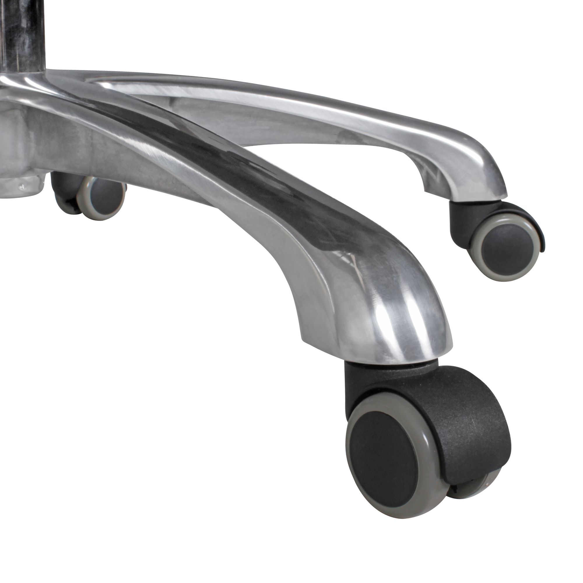 - Stabilna podstawa aluminiowa o średnicy 70 cm z kółkami na twarde podłogi