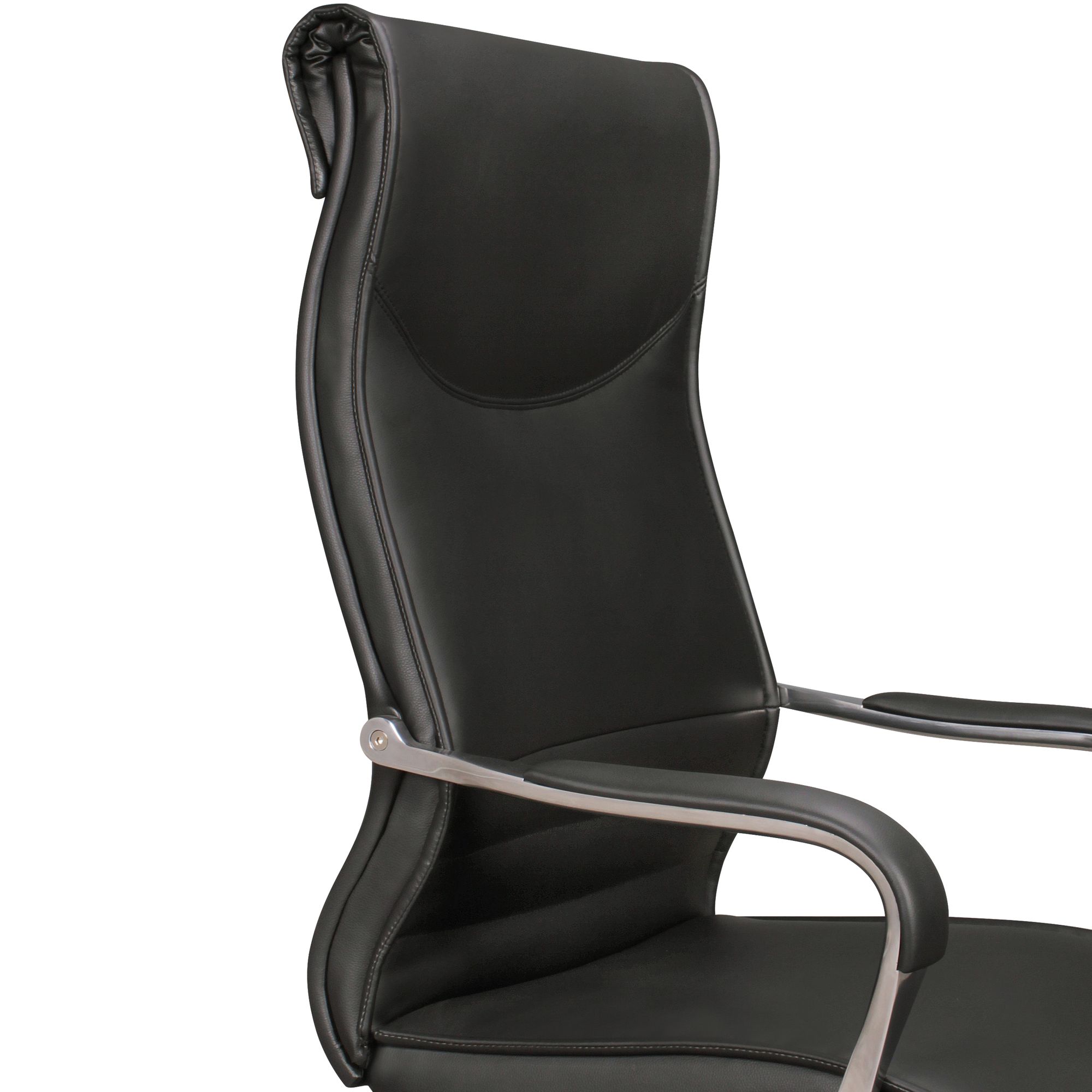 - Elegancka tapicerka z eko-skóry z polerowanymi aluminiowymi podłokietnikami