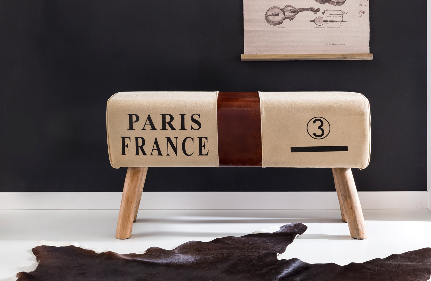 Informacje dot. produktu "Ławeczka Turnbock Design Bawełna 83% & Skóra Naturalna 17% Beż & Brąz | 91 x 51 x 30 cm"